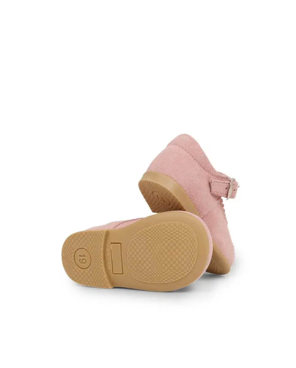 Незаменимая Мэри Джейн для девочек выполнена из спилок. С застежкой на пряжке для идеальной посадки и предотвращения их слишком легкого снятия. С усиленным носком и пяткой и нескользящей резиновой подошвой. Идеально подходит для первых шагов, это элегантная и в то же время очень универсальная обувь для любого среднесезонного дня. Очень подходит для осени-зимы-весны.