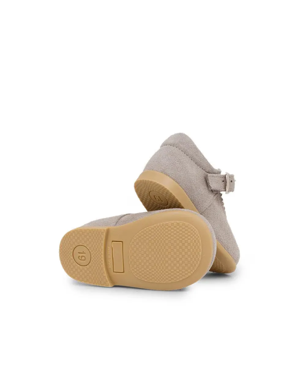 Незаменимая Мэри Джейн для девочек выполнена из спилок. С застежкой на пряжке для идеальной посадки и предотвращения их слишком легкого снятия. С усиленным носком и пяткой и нескользящей резиновой подошвой. Идеально подходит для первых шагов, это элегантная и в то же время очень универсальная обувь для любого среднесезонного дня. Очень подходит для осени-зимы-весны.