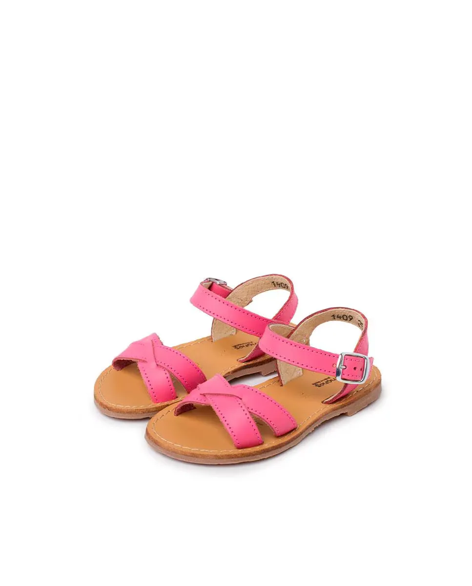Босоножки для девочек закрытые с гладкой кожей креста Pisamonas, фуксия