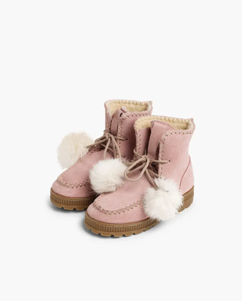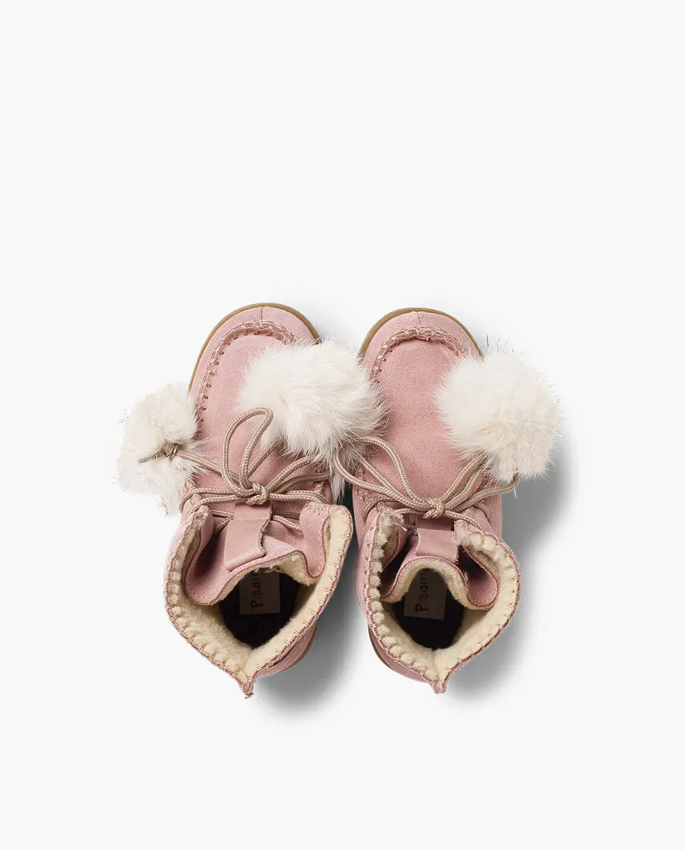 Замшевые ботинки для девочек с помпонами Pisamonas, цвет Rosa