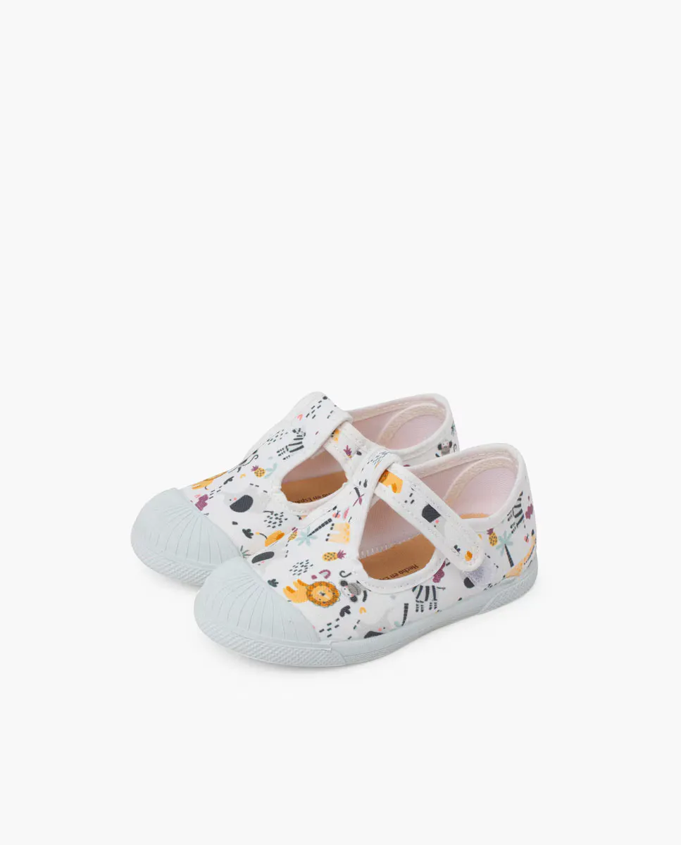 Красивые и практичные брезентовые самородки с белой подошвой, похожей на тапочку, и усиленным носком. Легкая и прочная детская обувь, идеально подходящая для того, чтобы выдержать бег трусцой вашего малыша весной и летом. С застежкой-липучкой для быстрой и идеальной посадки и с забавным принтом животных джунглей, они станут самой популярной обувью в парке. Эти наггетсы для мальчиков изготовлены из высококачественной ткани и имеют подошву и носок из белой резины, что придает им очень летний стиль и делает эти брезентовые сандалии для детей свежей, прочной и моющейся моделью. С чем вы их сочетаете? Это лучше всего, потому что имея белый носок и фон, цвета животных дают вам много возможностей для того, чтобы надеть эти кроссовки со всей их летней одеждой, с носками или без, потому что их идеальная отделка, их внутренняя стелька позволяет немного смягчить след, чтобы вашему малышу всегда было комфортно. Вы можете приобрести их от 20 до 26 размера, это идеальная летняя обувь для первых шагов!