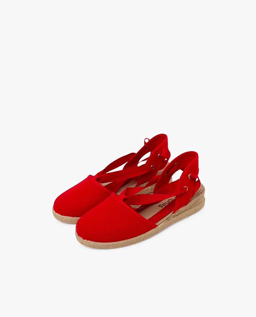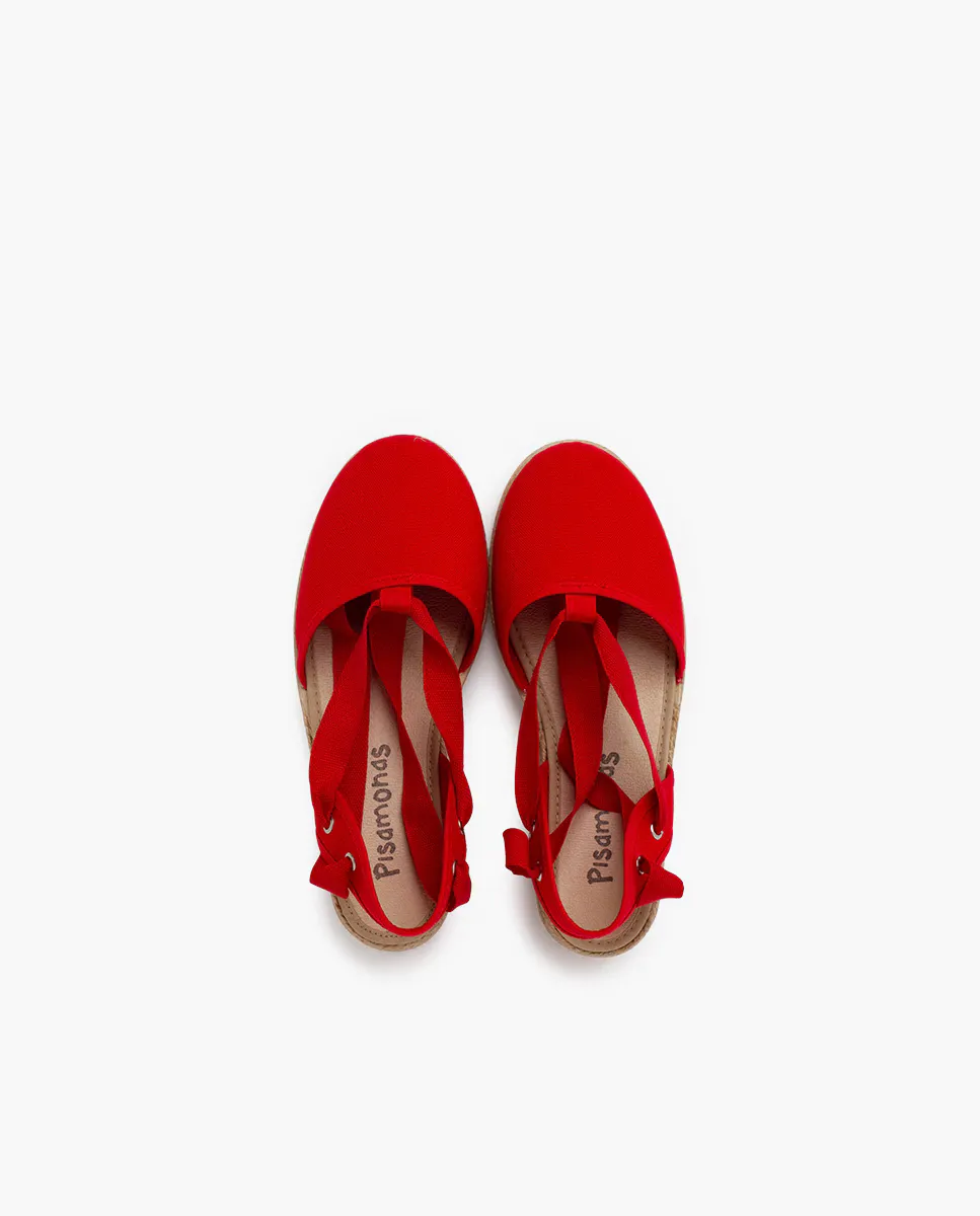 Эспадрильи на танкетке для девочек и ленты пике Pisamonas, красный