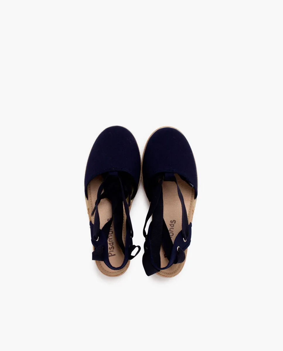 Эспадрильи на танкетке для девочек и ленты пике Pisamonas, тёмно-синий