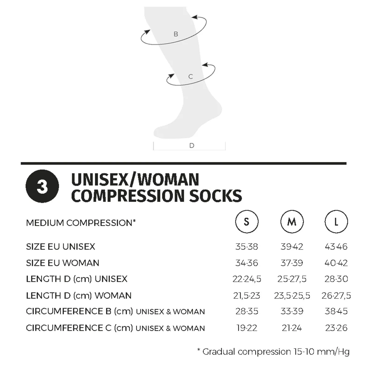 Носок унисекс, его компрессионный стержень с технологией FIRTECH и высотой H6 (до колена) специально разработан для обеспечения поддержки в самых сложных соревнованиях или тренировках. Эта компрессия делает венозный возврат больше, что задерживает появление лактата или токсинов и мышечный застой. Он также снижает удар, получаемый мышцей на 20%, а также вибрацию икры. Это свойство сводит к минимуму возможность усталости из-за напряжения костей и страшного периостита.