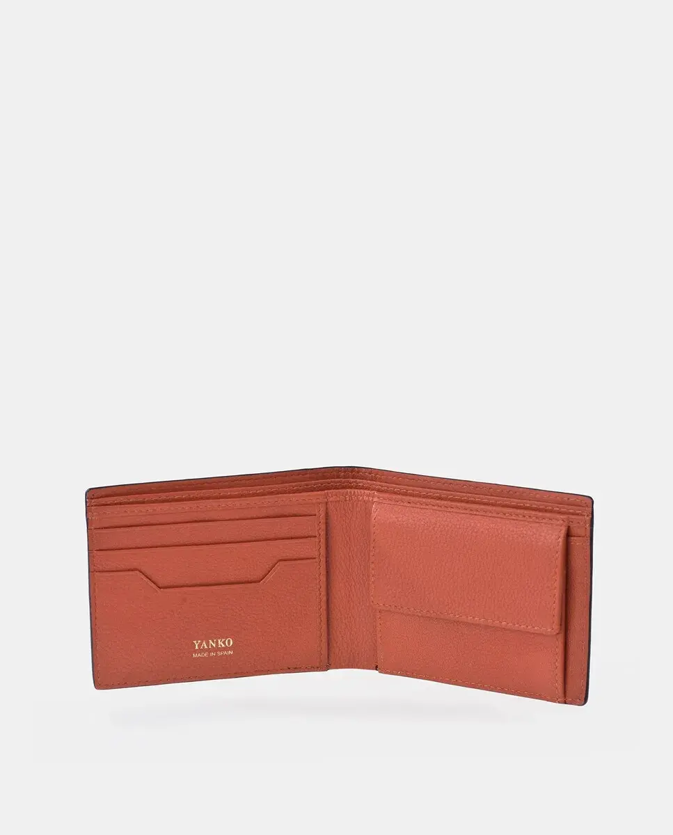 Мужской двойной футляр YANKO, состоящий из американского кошелька с внутренним кошельком для монет и плоского держателя для карт, оба изготовлены из кожи с привлекательной страусиной гравировкой и представлены в футляре с синей подкладкой.