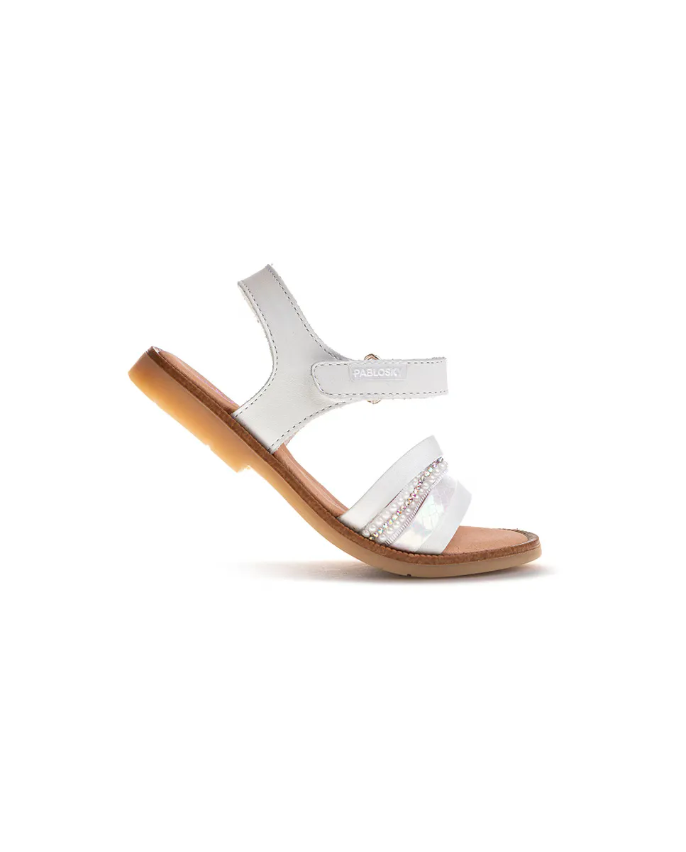 Кожаные босоножки для девочек с клейкой застежкой Pablosky, белый