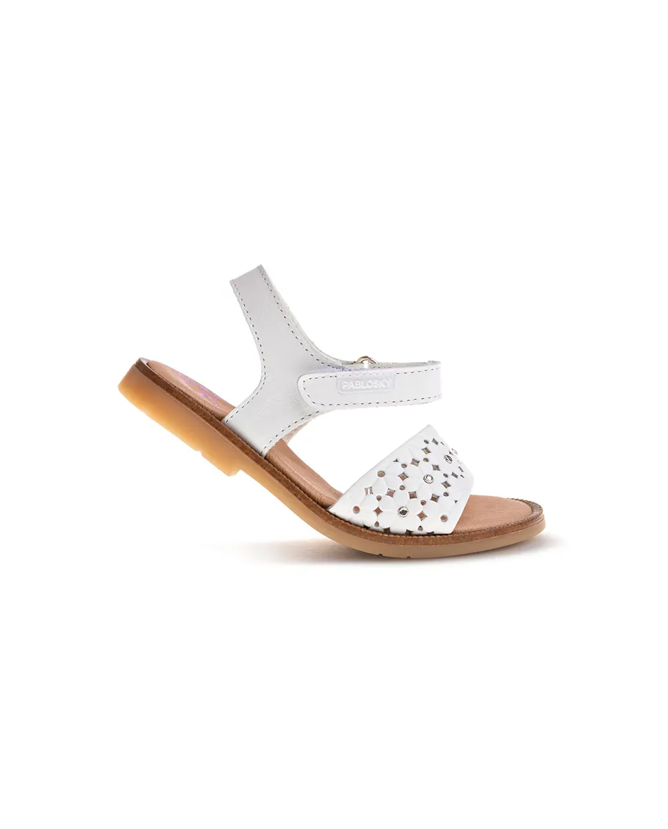 Кожаные босоножки для девочек с клейкой застежкой Pablosky, белый