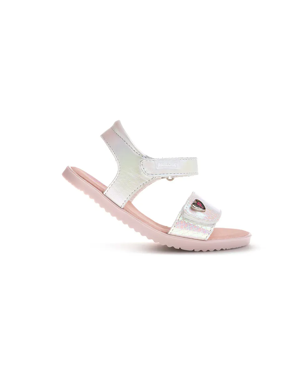 Кожаные босоножки для девочек с клейкой застежкой Pablosky, белый