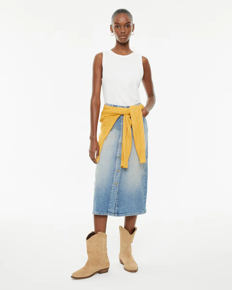 Женский приталенный топ, с вырезом без рукавов.