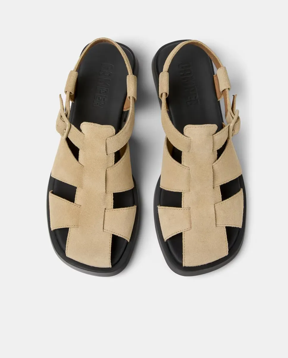 Женские кожаные босоножки Dana на каблуке Camper, бежевый