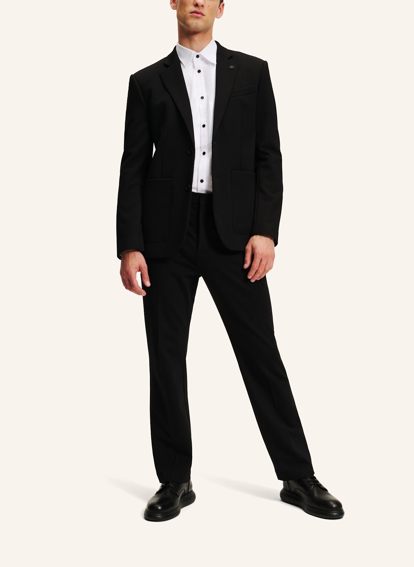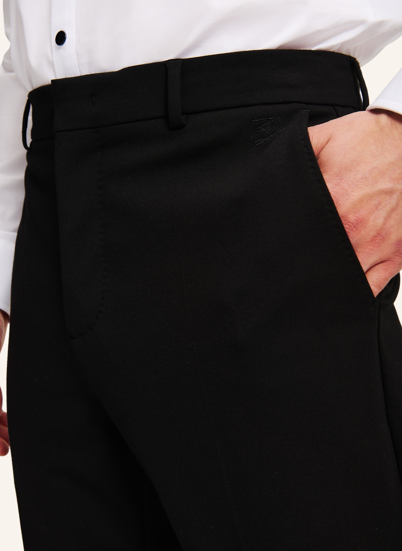 Вышитый автограф KARL на левом кармане и этикетка KARL LAGERFELD на заднем кармане