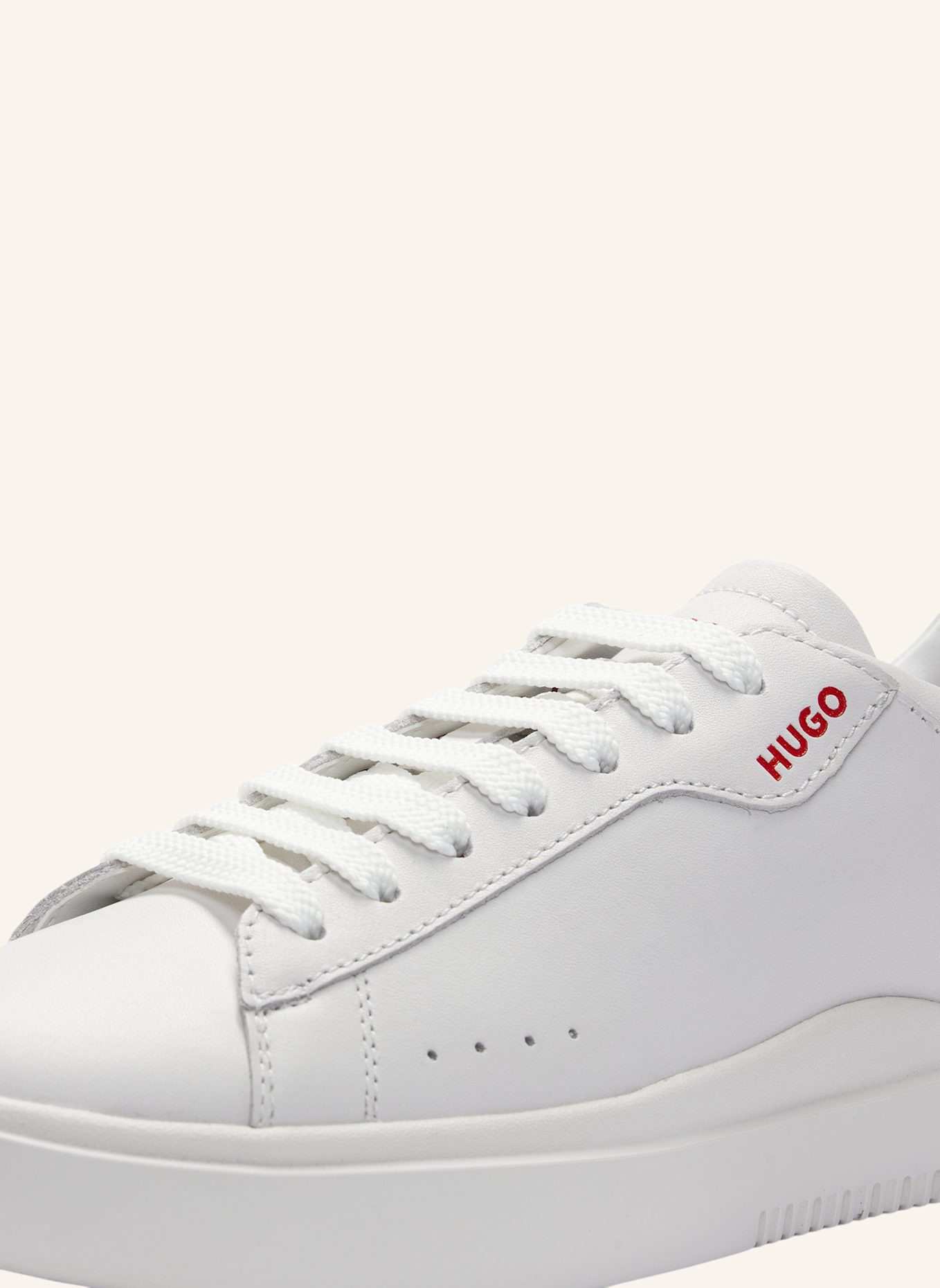 Кроссовки HUGO с подошвой типа «чашка» и несколькими фирменными надписями в фирменном красном цвете.