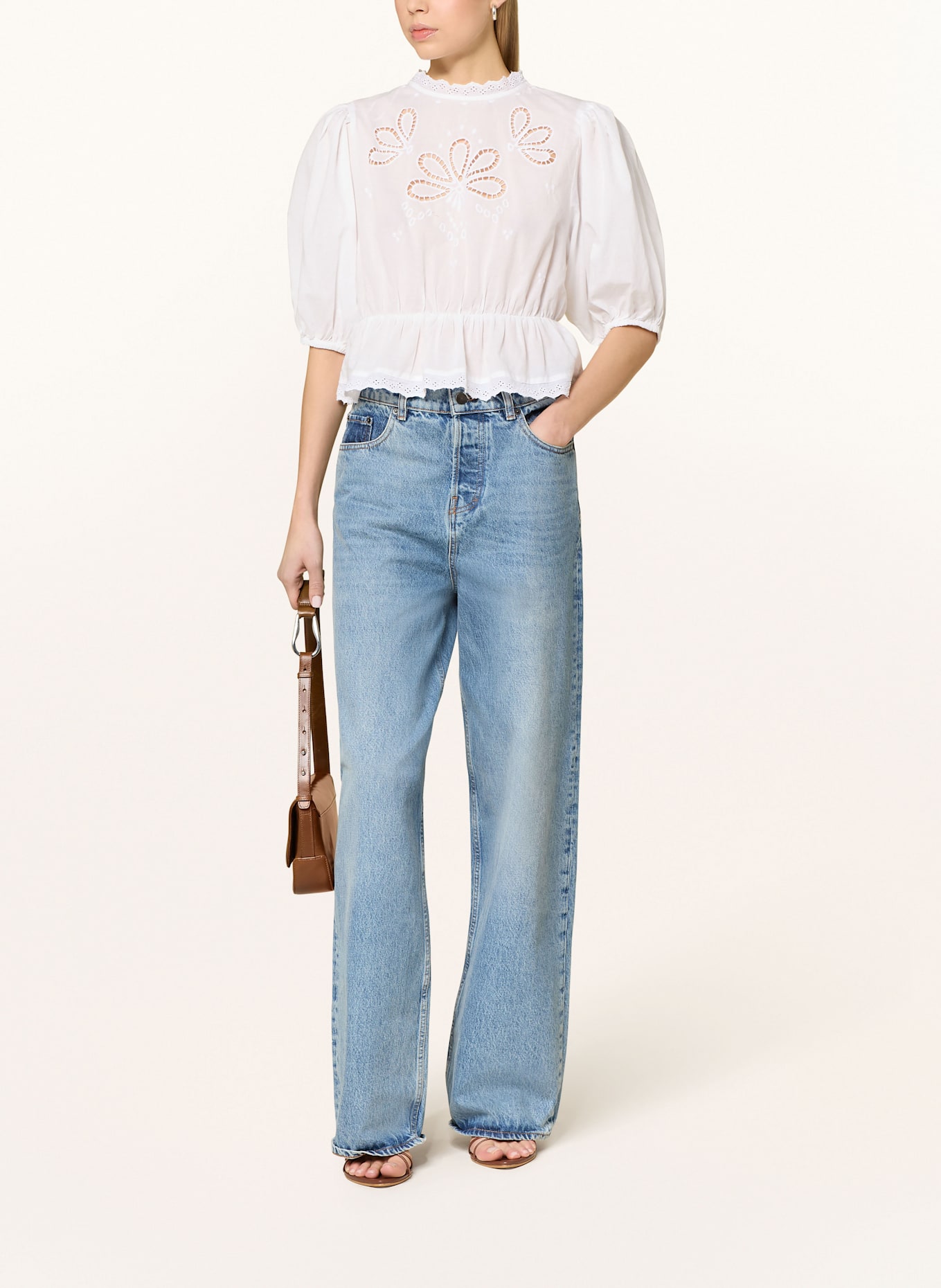 Блузка-Рубашка с ажурным кружевом Gina Tricot, белый 4 067₽