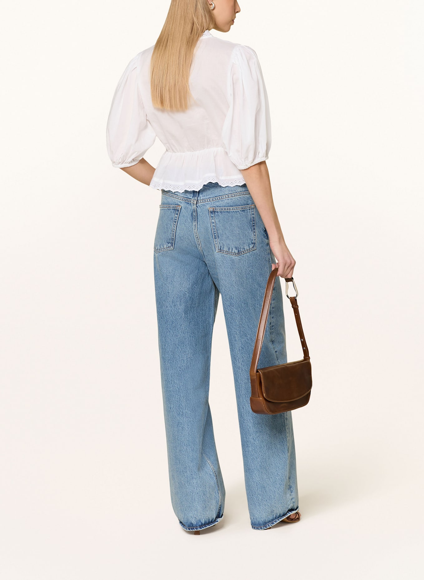 Блузка-Рубашка с ажурным кружевом Gina Tricot, белый