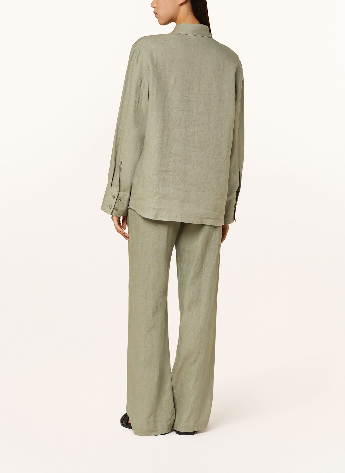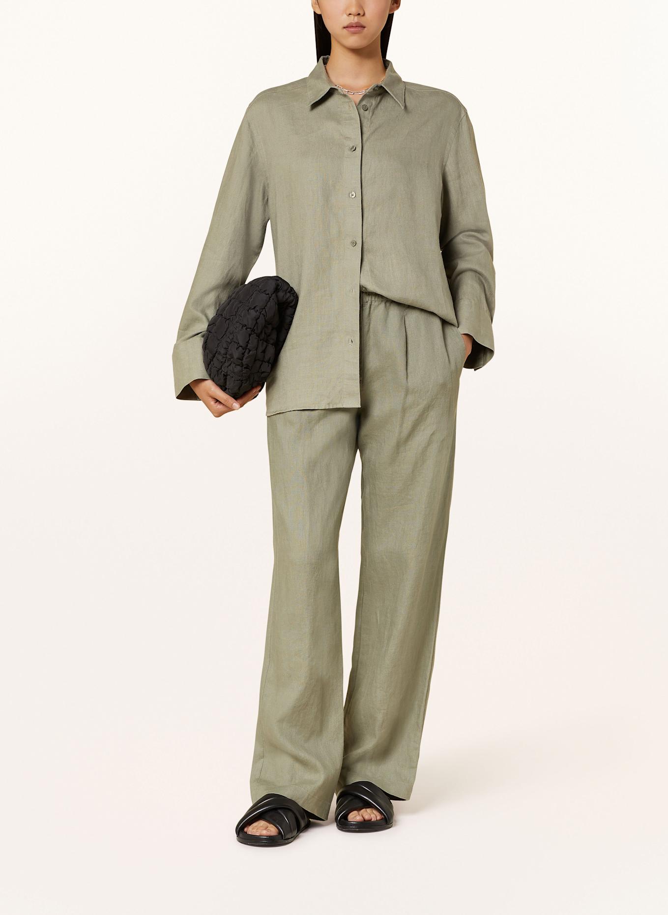 Брюки Марлен сатове из льна Samsøe Samsøe, зеленый