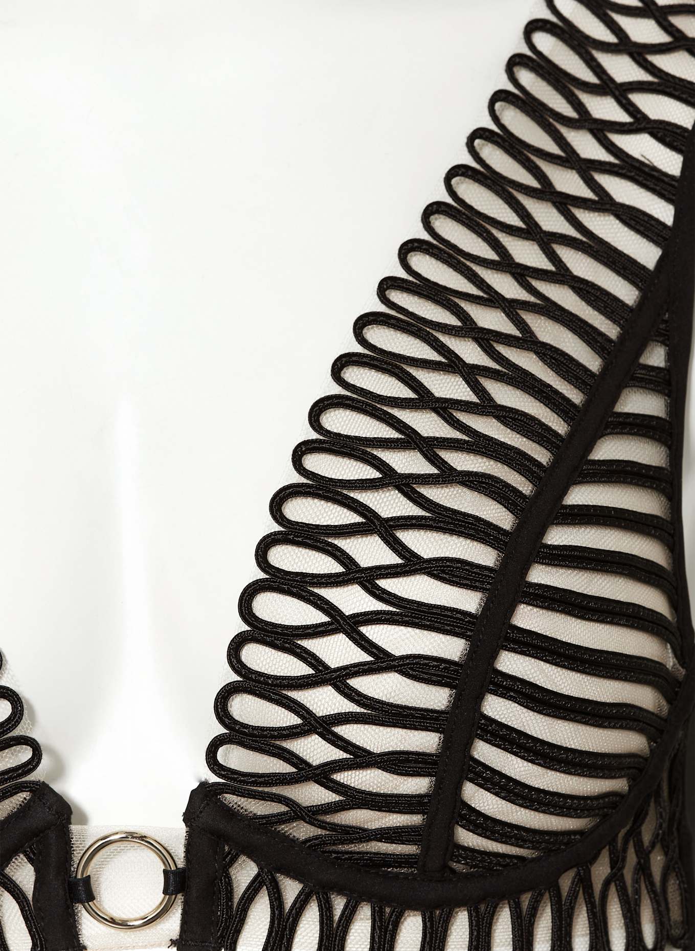 Вышивка сутажным шнуром на прозрачном тюле