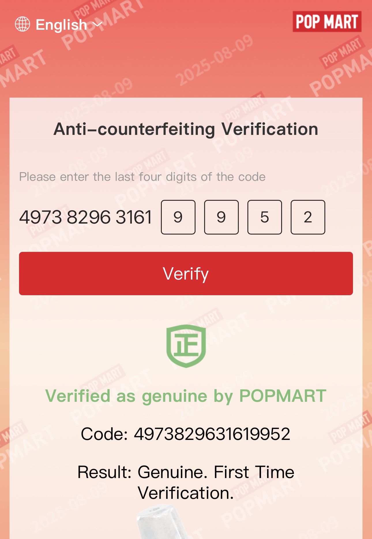 Все супер, попалась зеленая лабубу, все коды пробились на оф сайте, 100 % оригинал