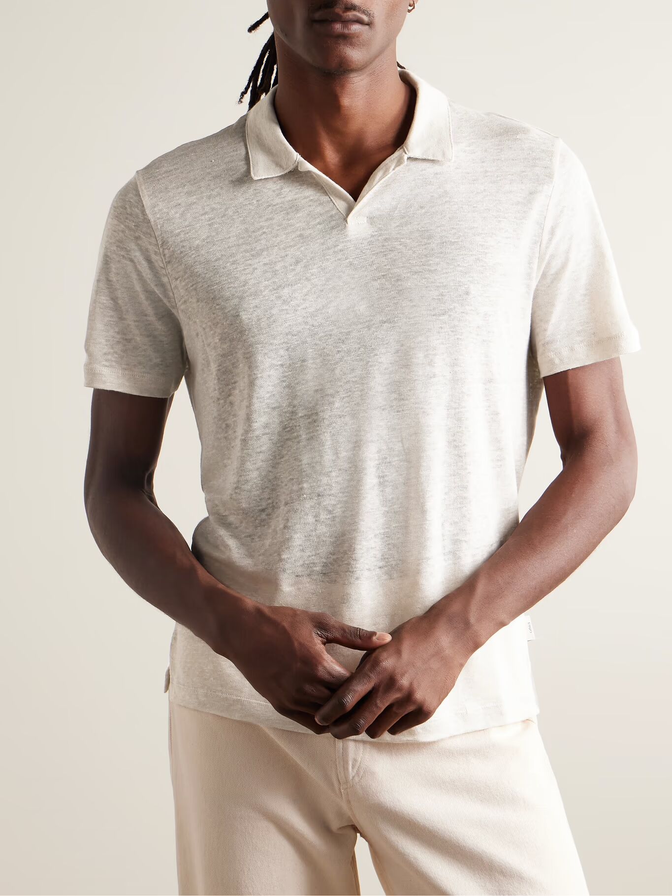 Вы всегда можете рассчитывать на Onia в вопросах качественной базовой одежды. Эта рубашка-поло с открытым воротником 'Shaun' выполнена из легкого льняного джерси с тактильной, утолщенной ручкой.