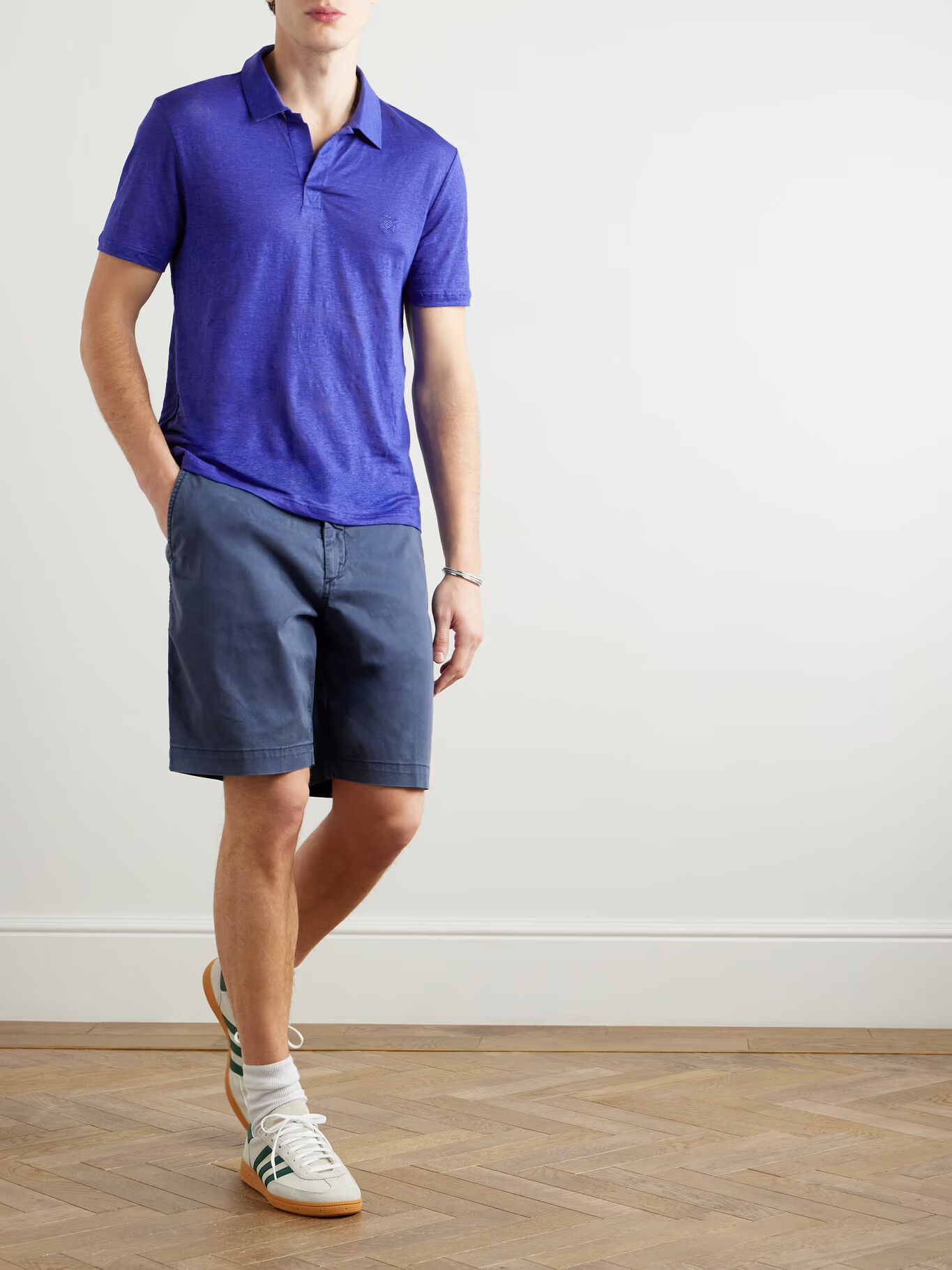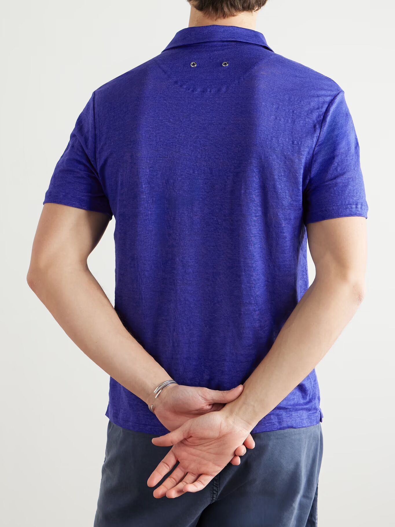 Рубашка поло «Pyramid» от Vilebrequin изготовлена из льняного джерси, который сохраняет прохладу и ощущается почти невесомым. Она разработана с минимальной планкой без пуговиц и отделана двумя люверсами на затылке для дополнительной воздухопроницаемости.