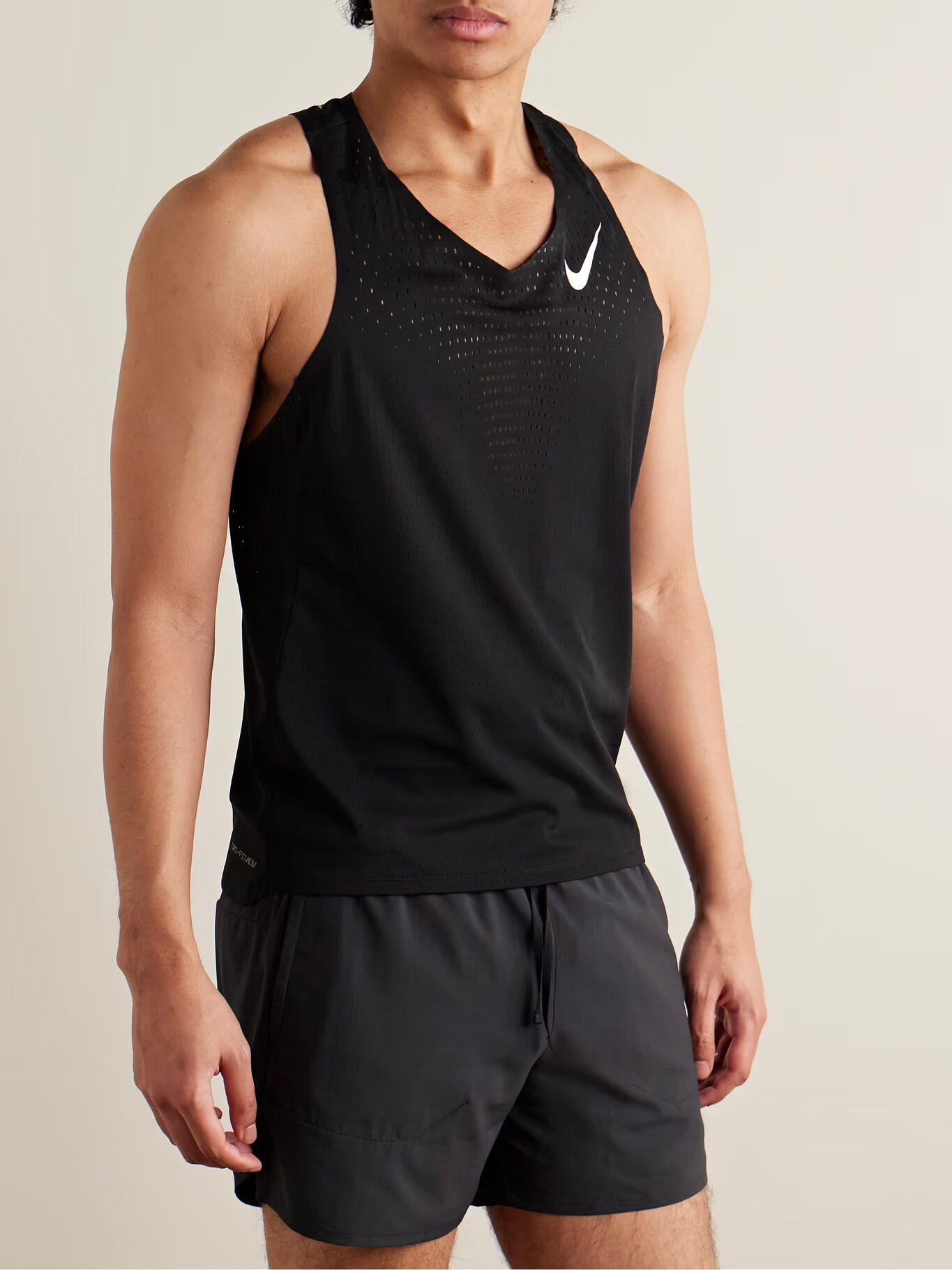 - Эта майка AeroSwift изготовлена из легкого, влагоотводящего материала Dri-FIT ADV.