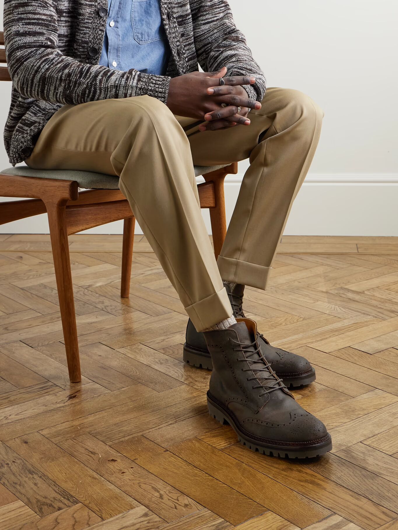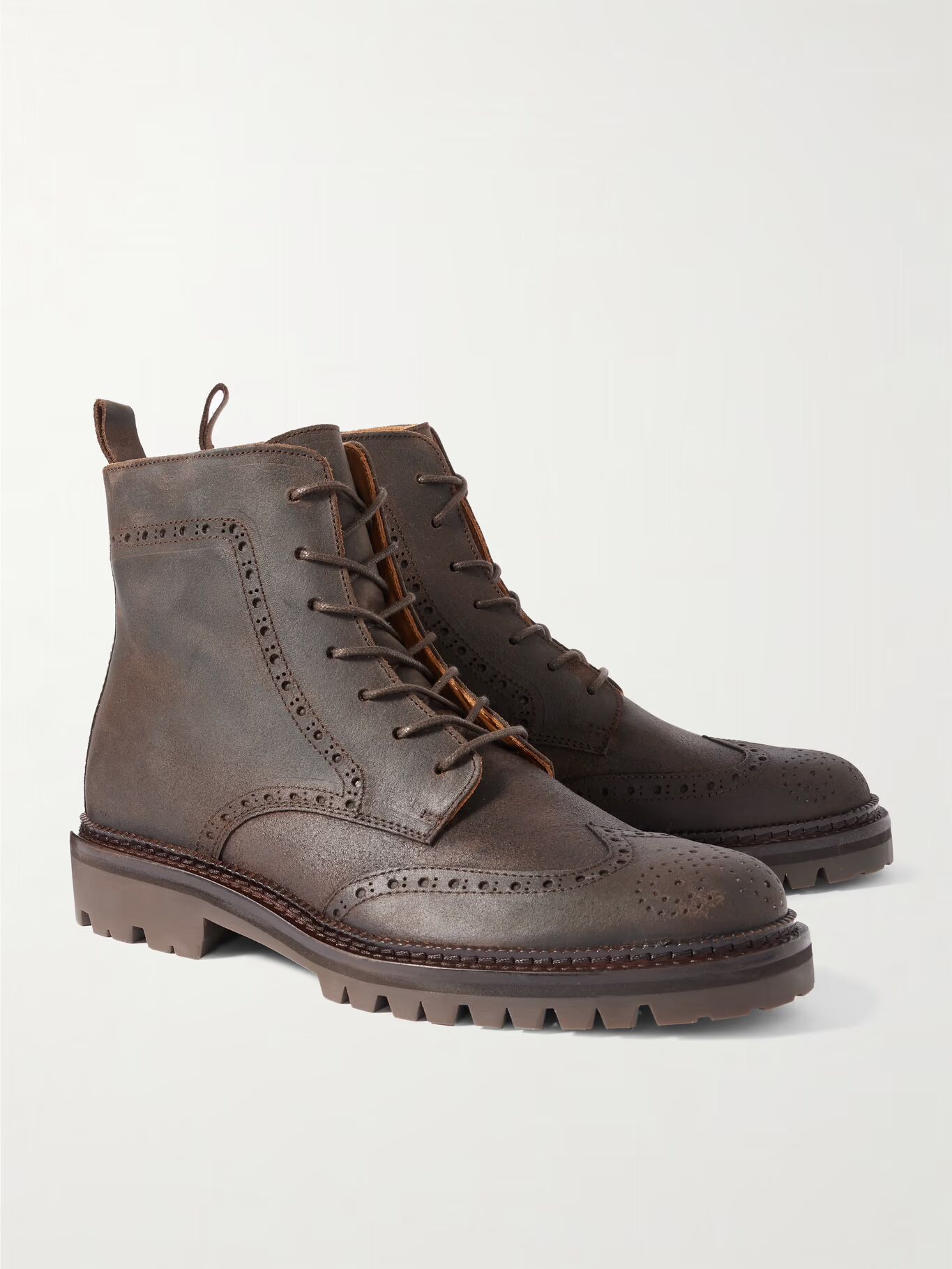 СОЗДАНО Г-НОМ ПОРТЕРОМ. Броги были популярны среди земледельцев в 19 веке, хотя сейчас они более распространены в полуофициальной среде. Вдохновленные традиционными парами, ботинки г-на П. сделаны из винтажной вощеной кожи и установлены на подошвы Vibram 'Commando'. Отнесите их сапожнику, когда протекторы со временем износятся.