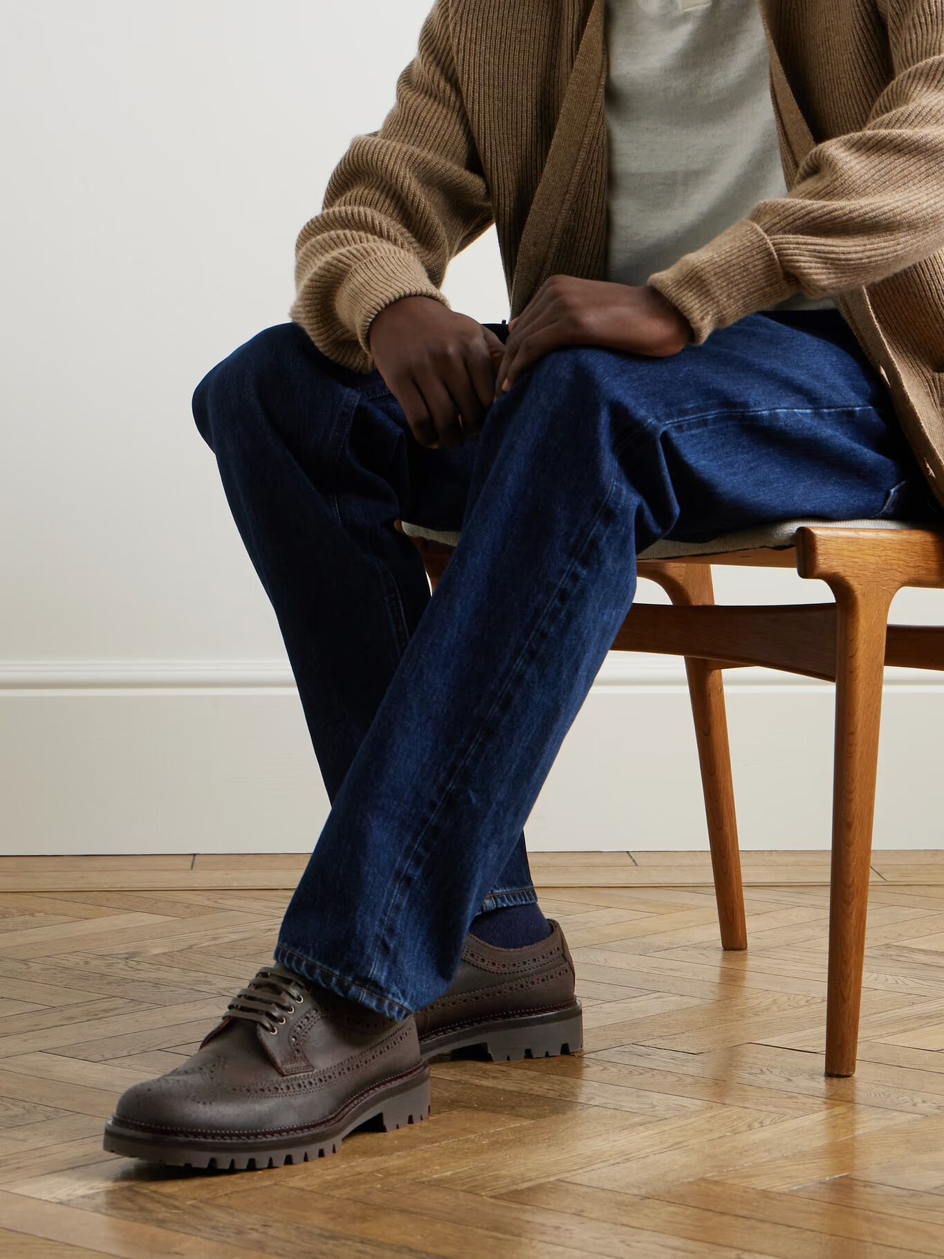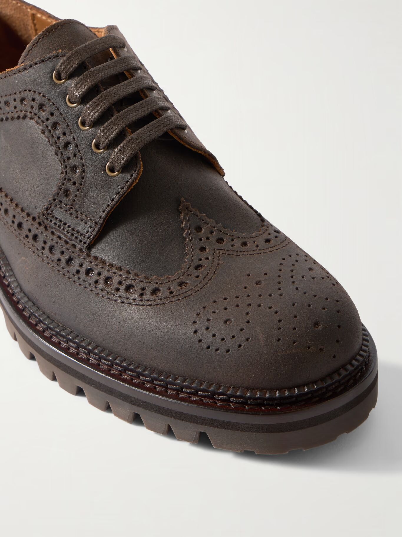 СОЗДАНО Г-НОМ ПОРТЕРОМ. Броги «Жак» г-на П. — отличный способ добавить индивидуальности как элегантным, так и повседневным нарядам. Они изготовлены из вощеной кожи с традиционными перфорированными деталями и установлены на прочную резиновую подошву Vibram.