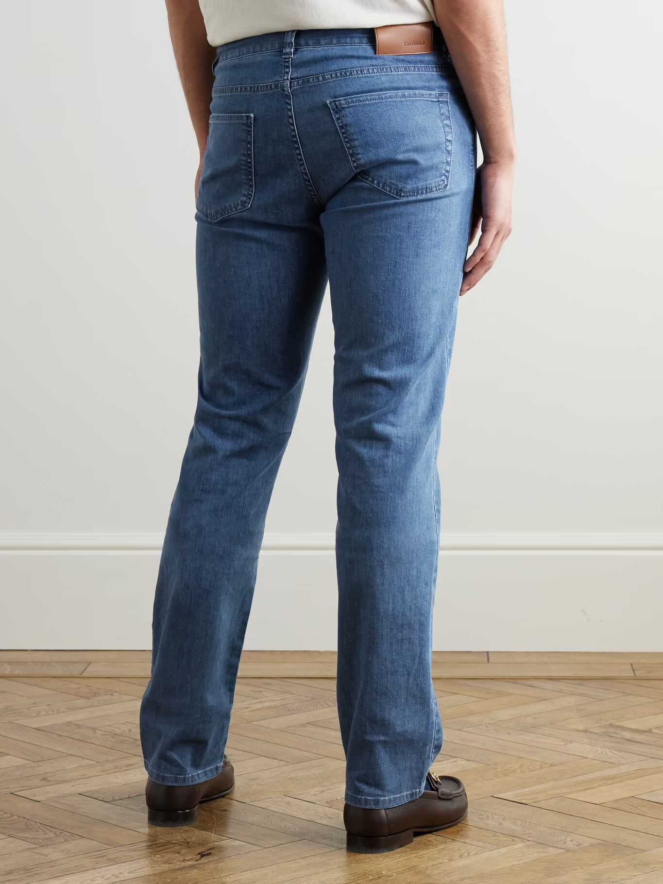 Семейный итальянский лейбл Canali создает изысканную, но легкую одежду уже почти столетие. Эти джинсы сшиты из мягкого денима с ноткой эластичности и имеют классический прямой крой.