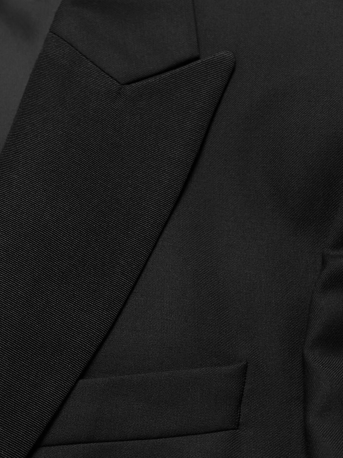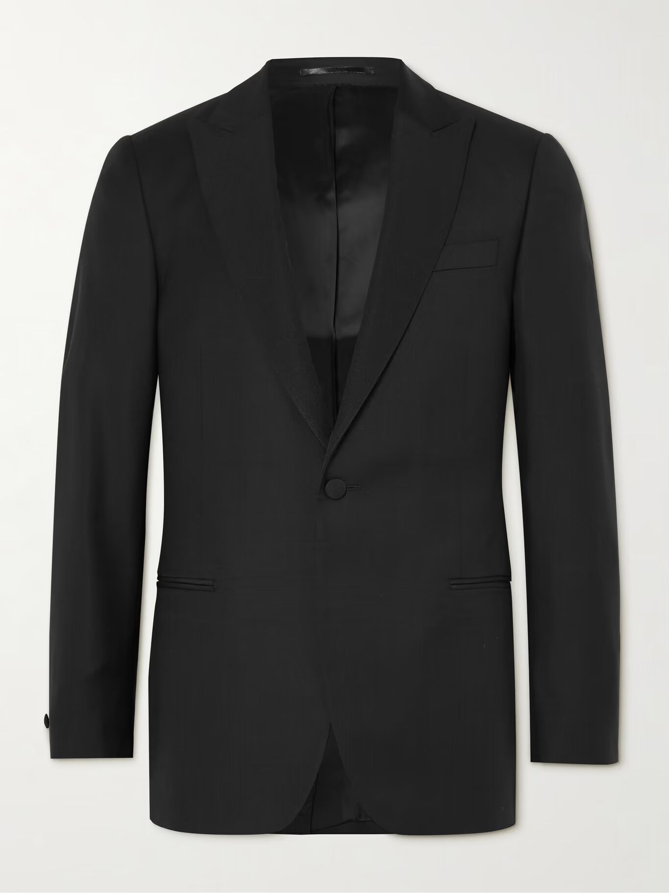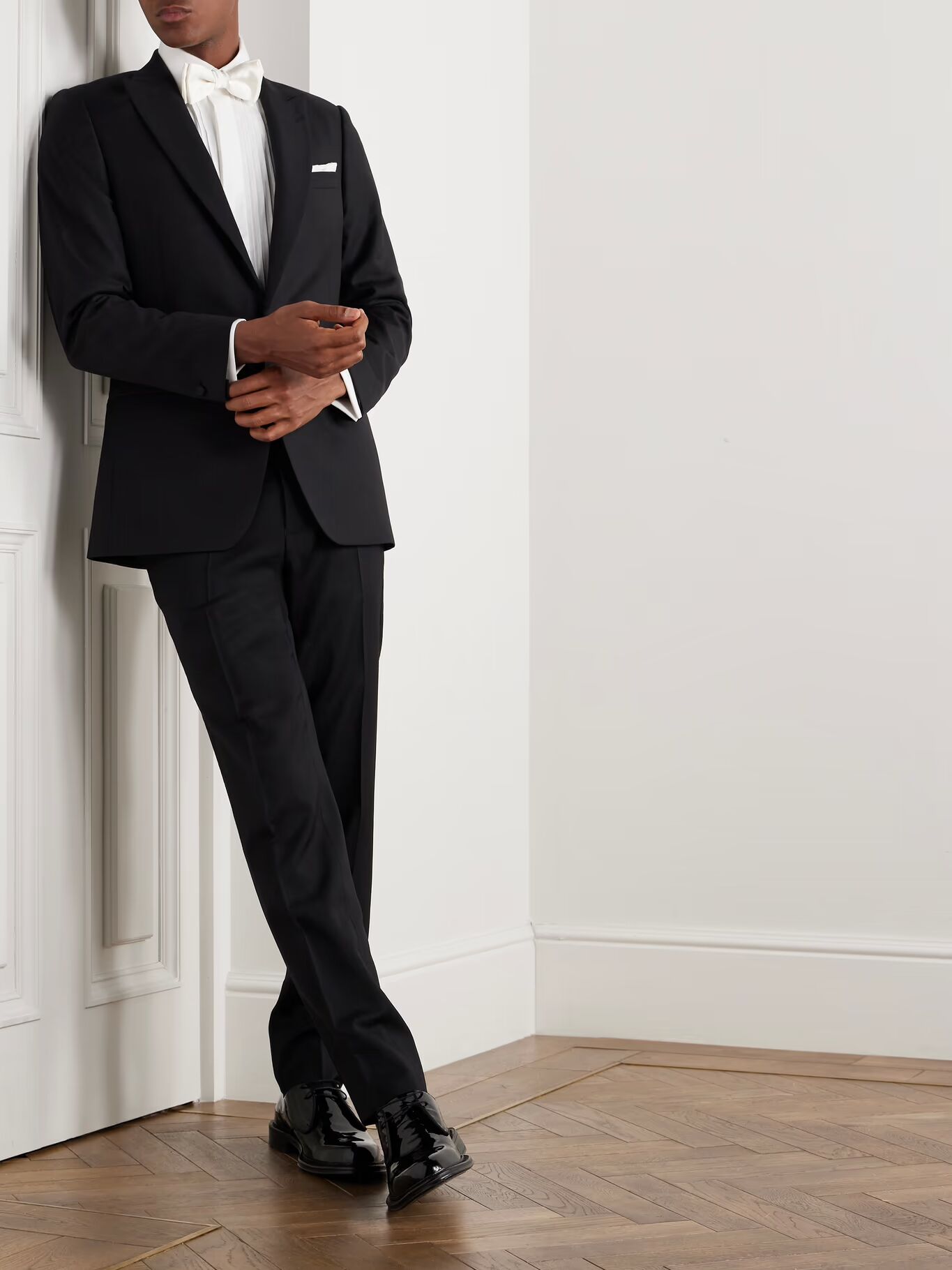 СОЗДАН MR PORTER. Нестареющая классика, смокинг Mr P станет основой вашего гардероба black tie. Сшитый из чистой шерсти, он дополнен острыми лацканами и манжетами на пуговицах. Носите его с подходящими черными брюками.