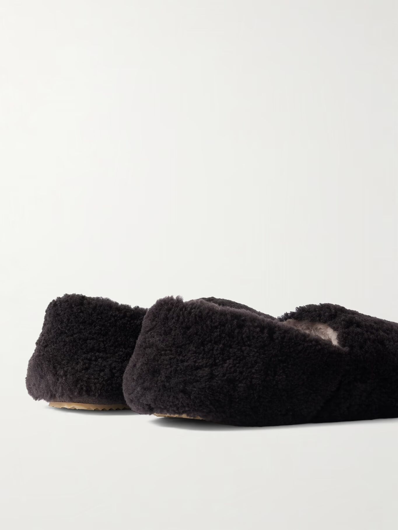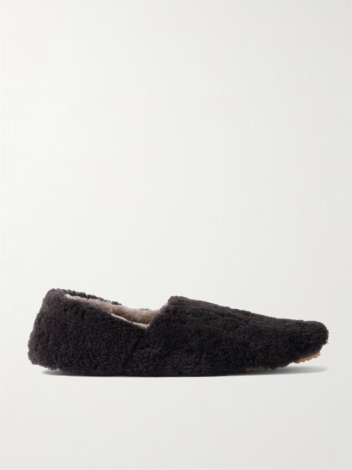 СОЗДАНО MR PORTER. Мало что может быть более комфортным, чем хорошая пара тапочек. Эта пара от Mr P., вдохновленная стилем babouche, сделана из мягкой овчины и установлена на слегка рифленую резиновую подошву.