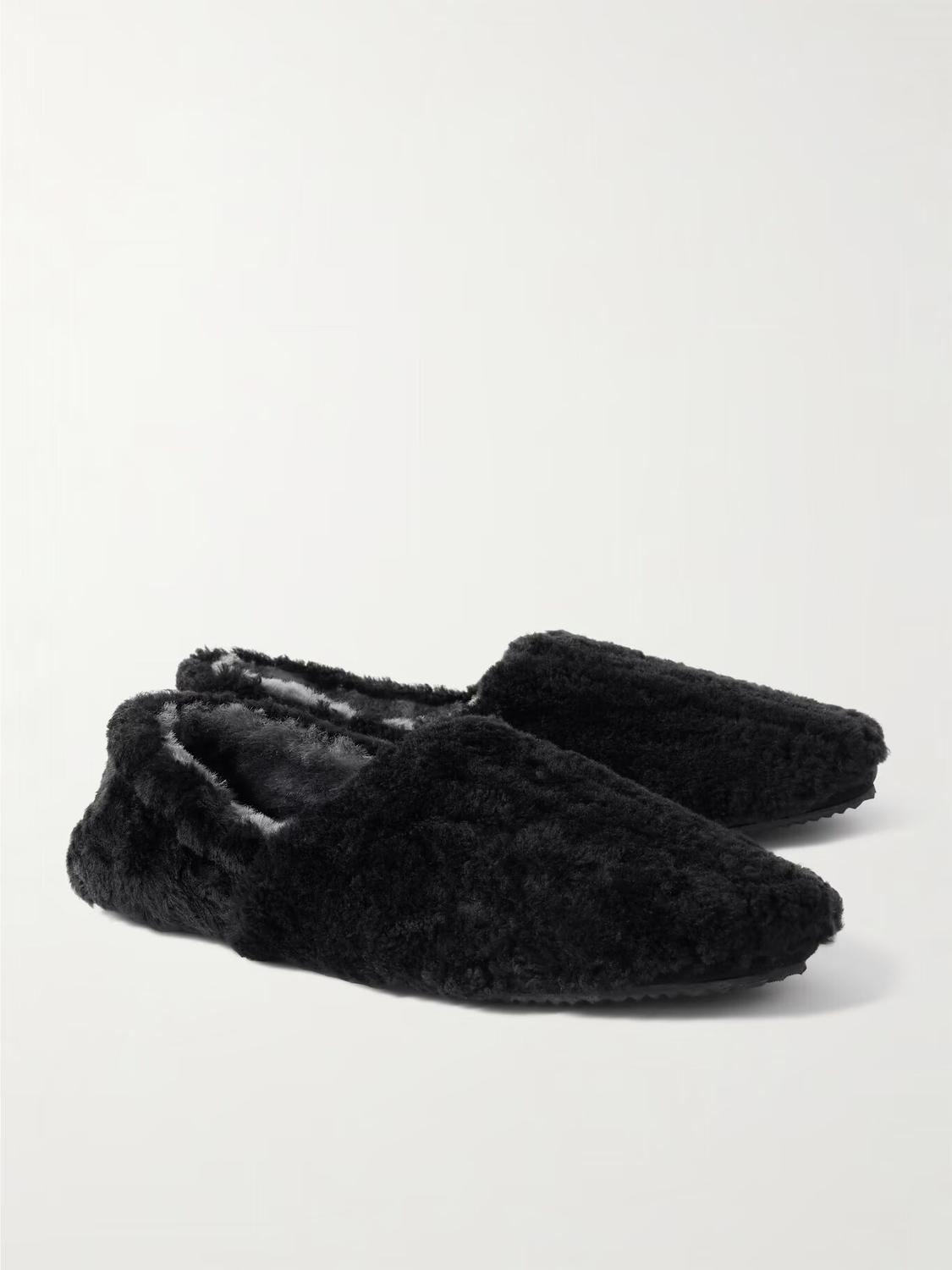 СОЗДАНО MR PORTER. Мало что может быть более комфортным, чем хорошая пара тапочек. Эта пара от Mr P., вдохновленная стилем babouche, сделана из мягкой овчины и установлена на слегка рифленую резиновую подошву.
