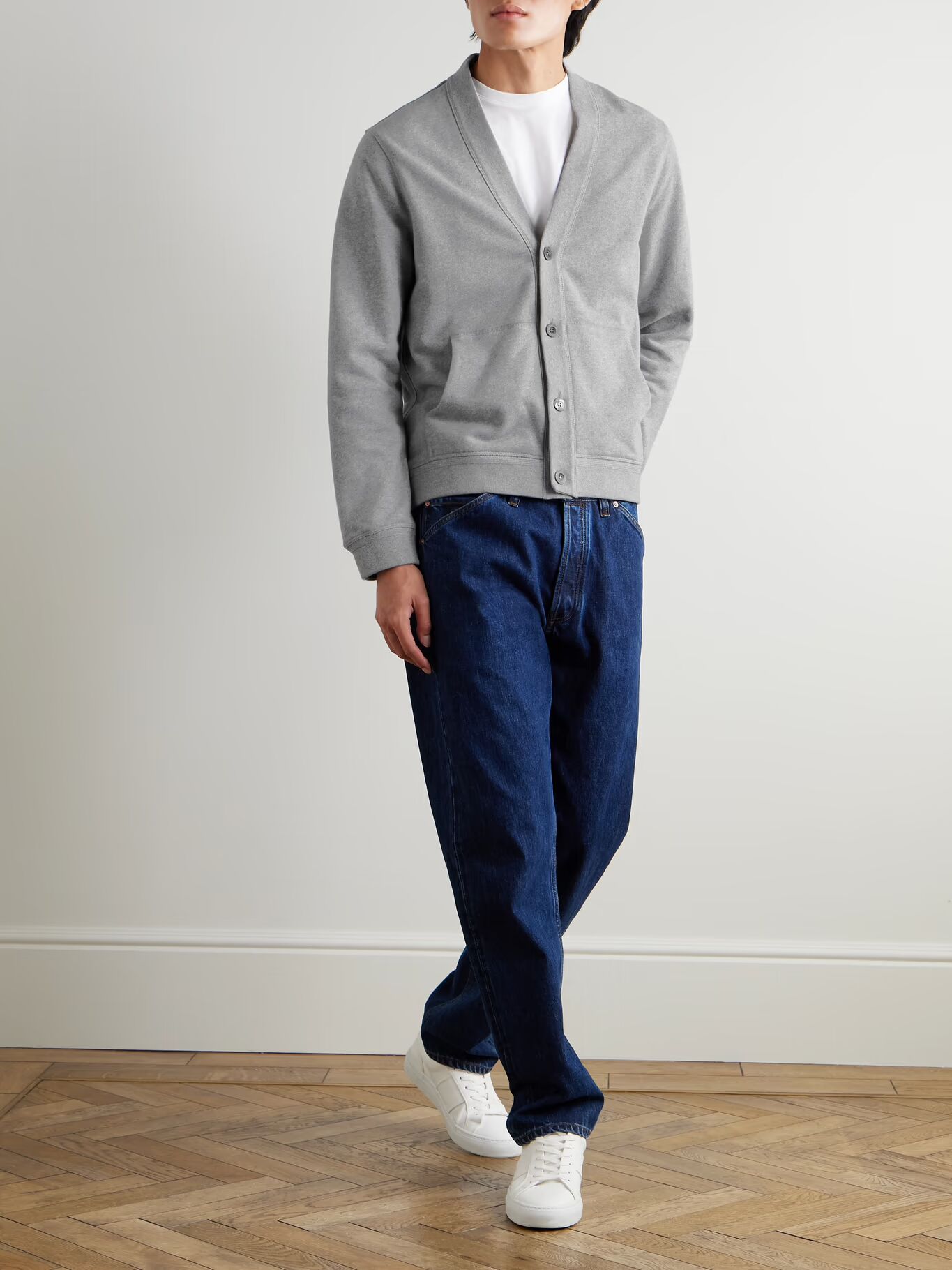 РАЗРАБОТАНО Г-НОМ ПОРТЕРОМ. Кардиган г-на П. сделан из хлопчатобумажного трикотажа, поэтому он немного свободнее традиционных моделей. Он скроен для свободного кроя и имеет карманы-кенгуру в спортивном стиле, куда можно положить телефон.