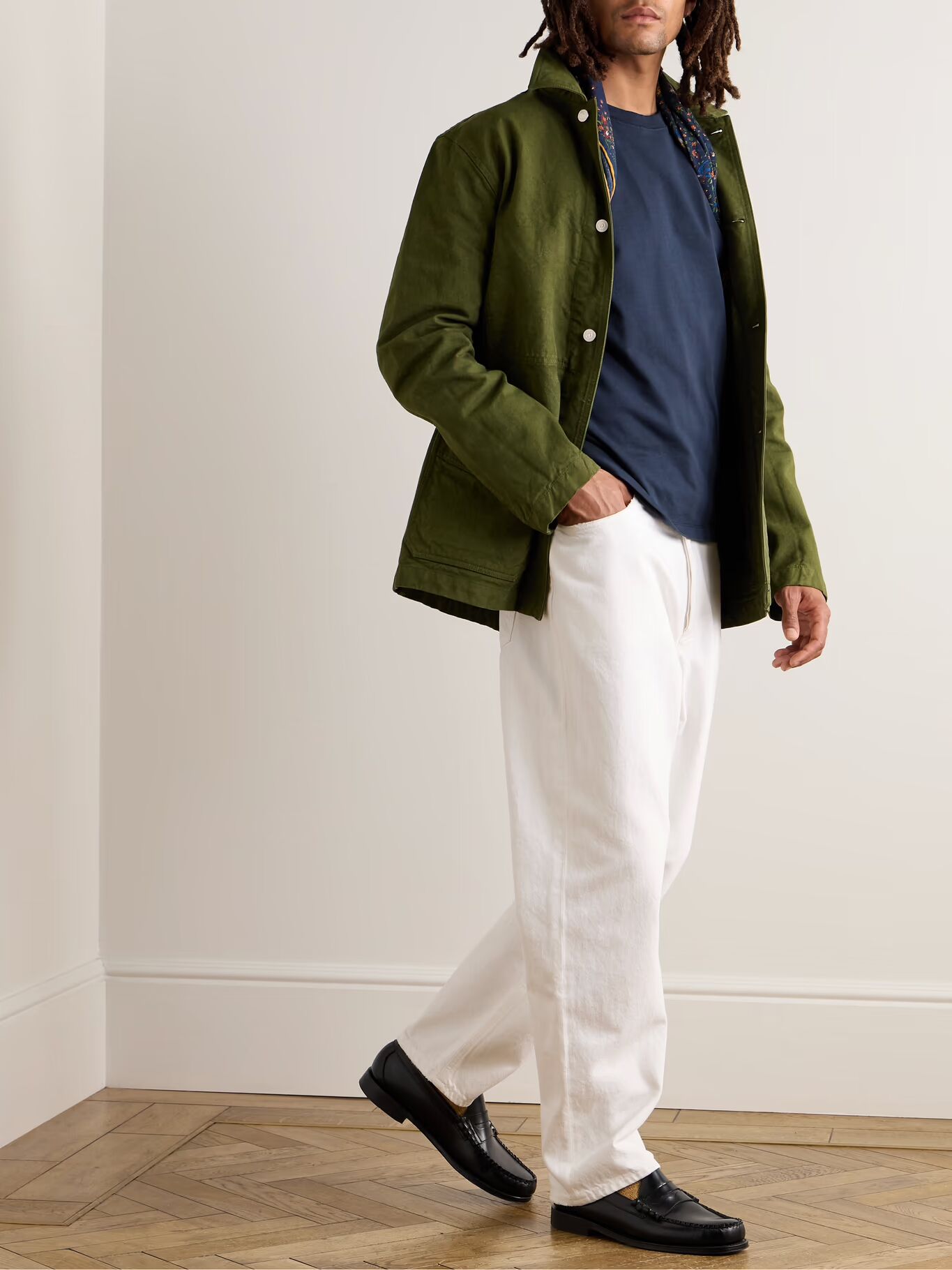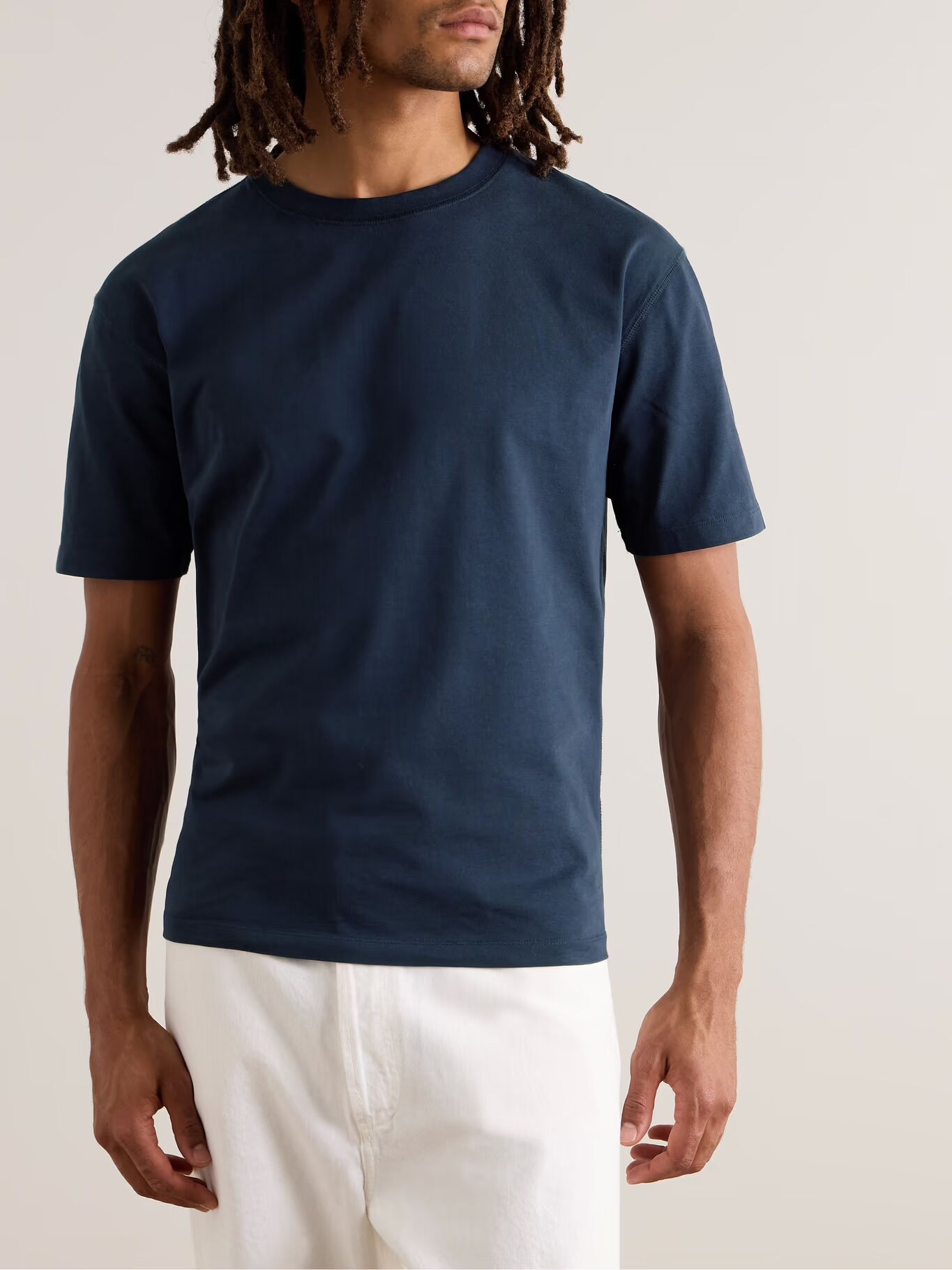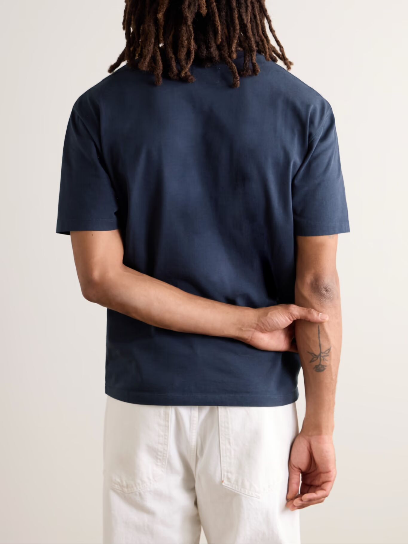 Если вы ищете хорошую футболку, то вряд ли найдете что-то лучше, чем у Drake's, с точки зрения качества. Вдохновленная походными стилями середины века, она сшита из прочного хлопкового джерси в свободном крое с мягким ребристым круглым вырезом.