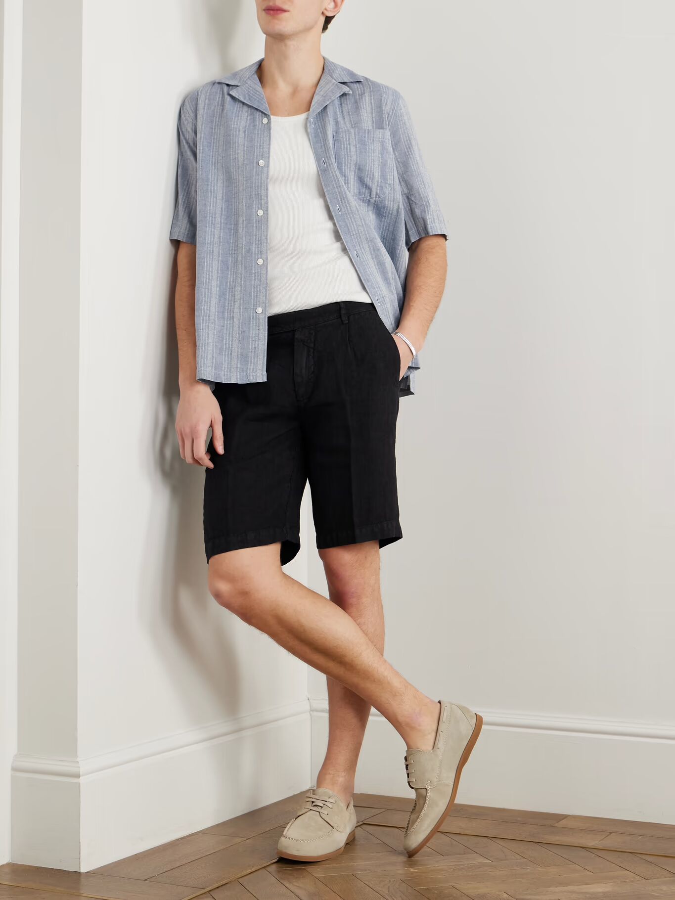Массимо Альба считает комфорт путеводной звездой - "Вы должны осознавать чувство свободы, когда что-то носите", - сказал он The Journal. Эти шорты 'Alaccia' сделаны из мятого льна и имеют складки спереди для дополнительного пространства.