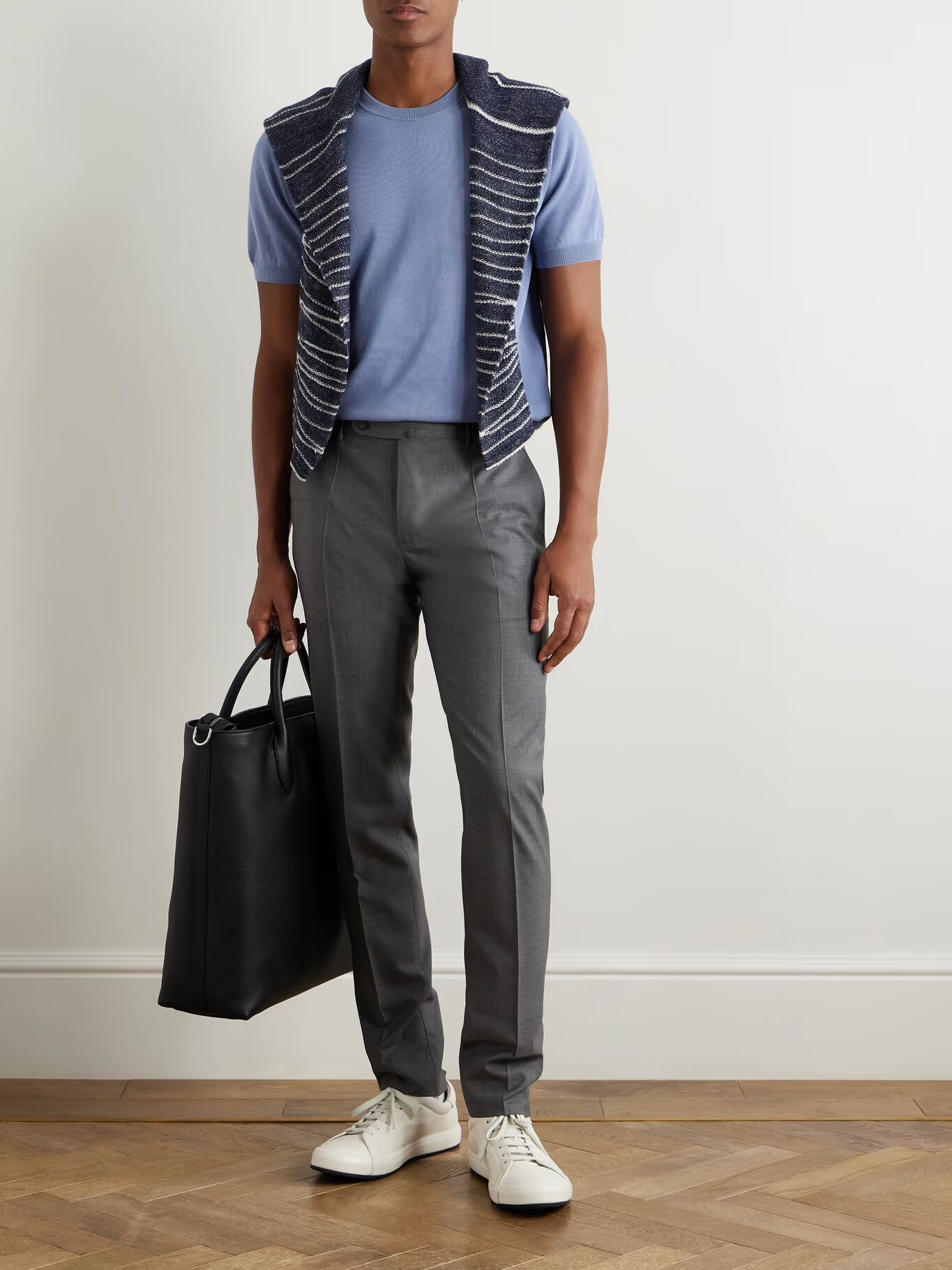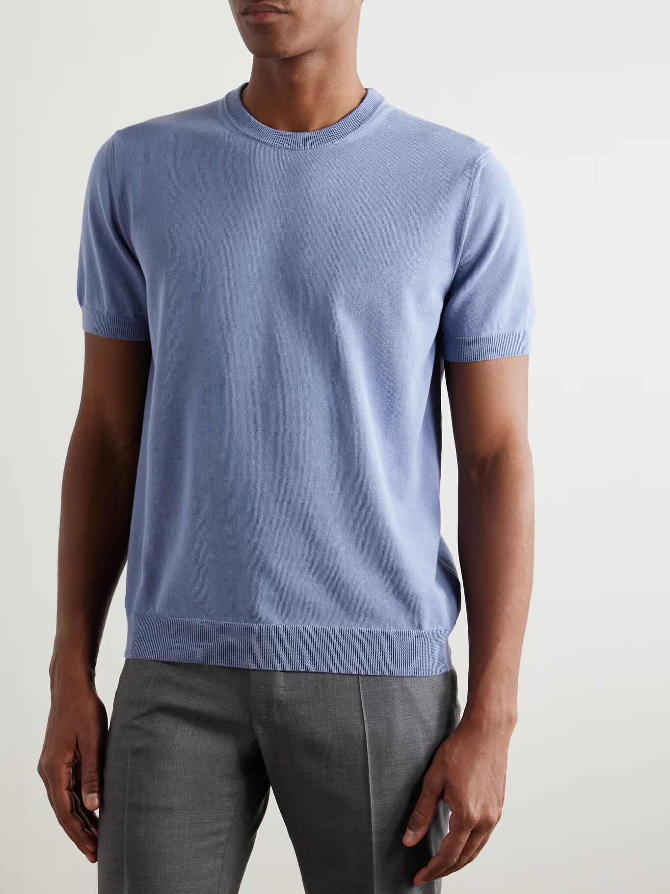 Одежда Incotex создана, чтобы выходить за рамки сезонов и тенденций. Эта футболка связана в Италии из легкого хлопка, поэтому она больше похожа на свитер, и отделана ребристыми окантовками.