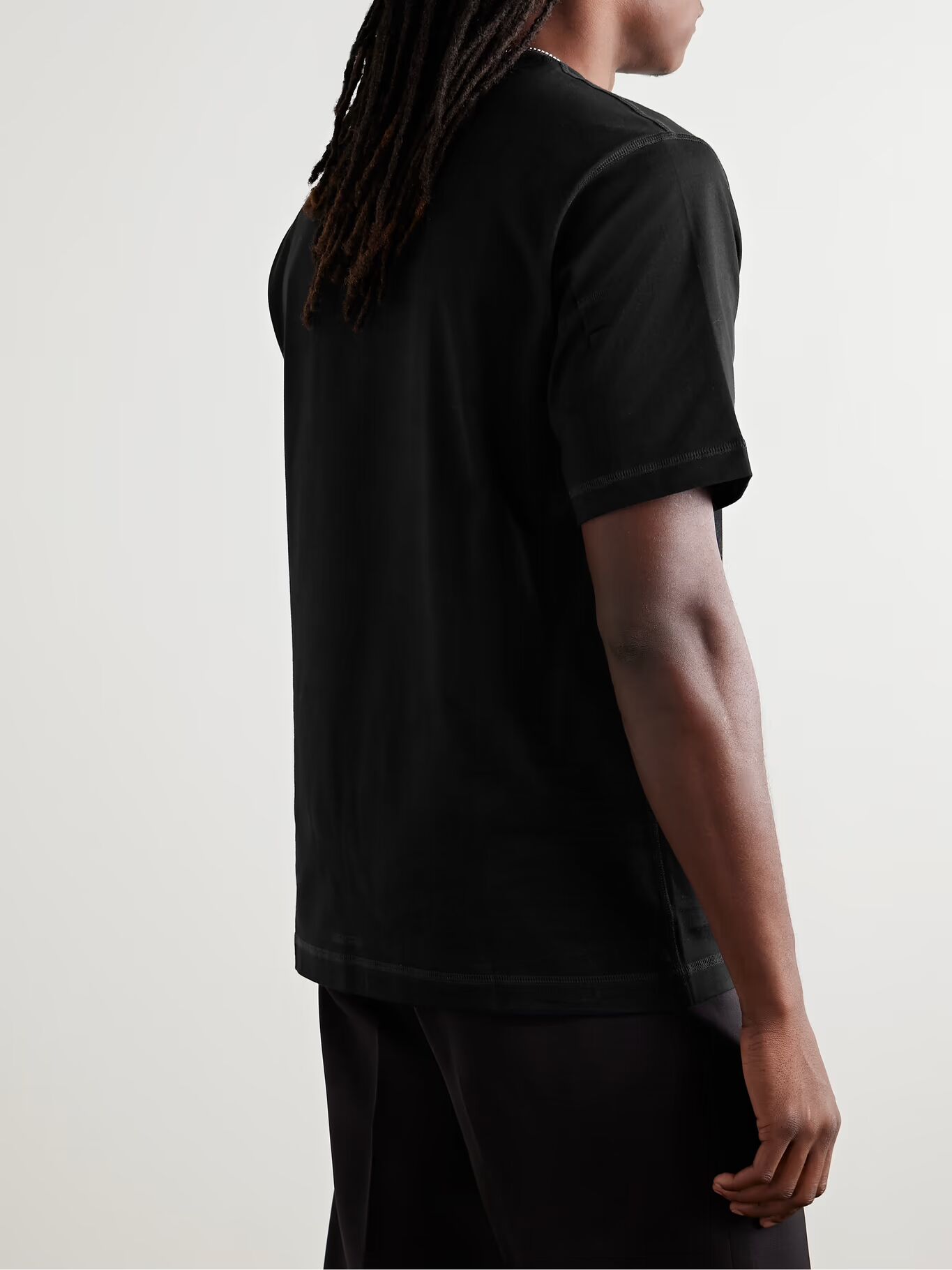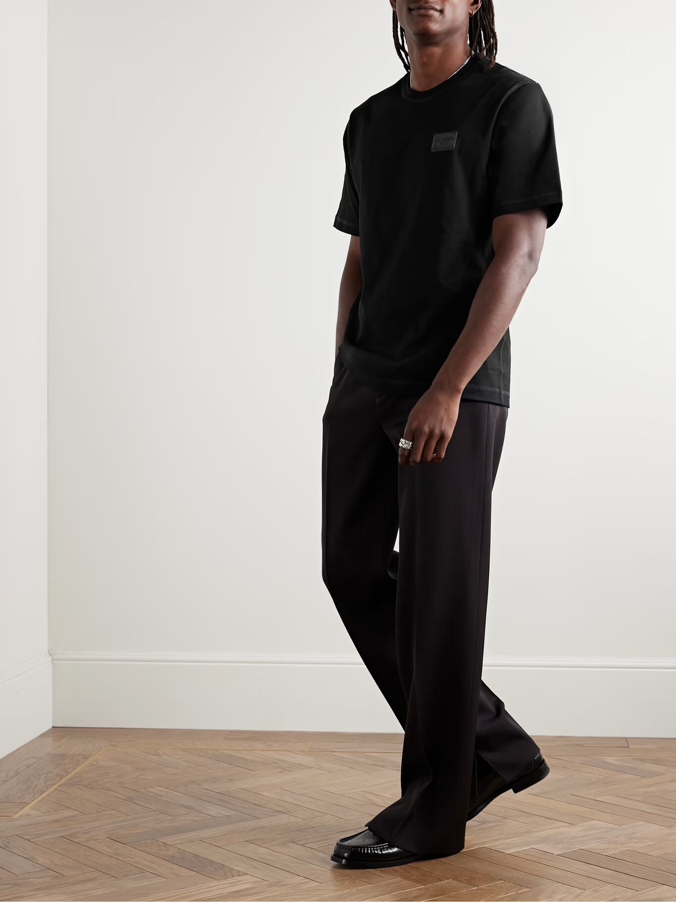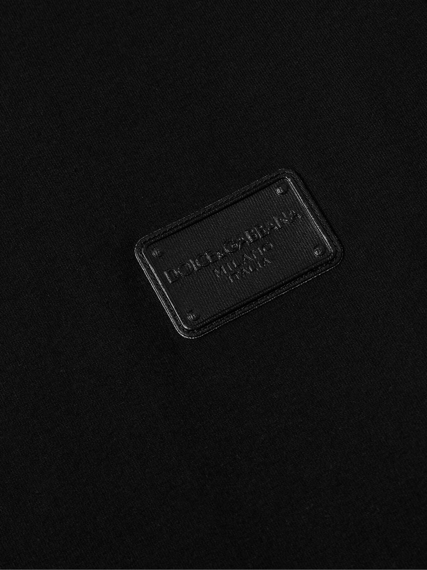 Футболка Dolce&Gabbana итальянского производства украшена тонкой аппликацией с тональным прорезиненным логотипом на груди. Она сшита из хлопкового трикотажа и имеет удобный, свободный крой.