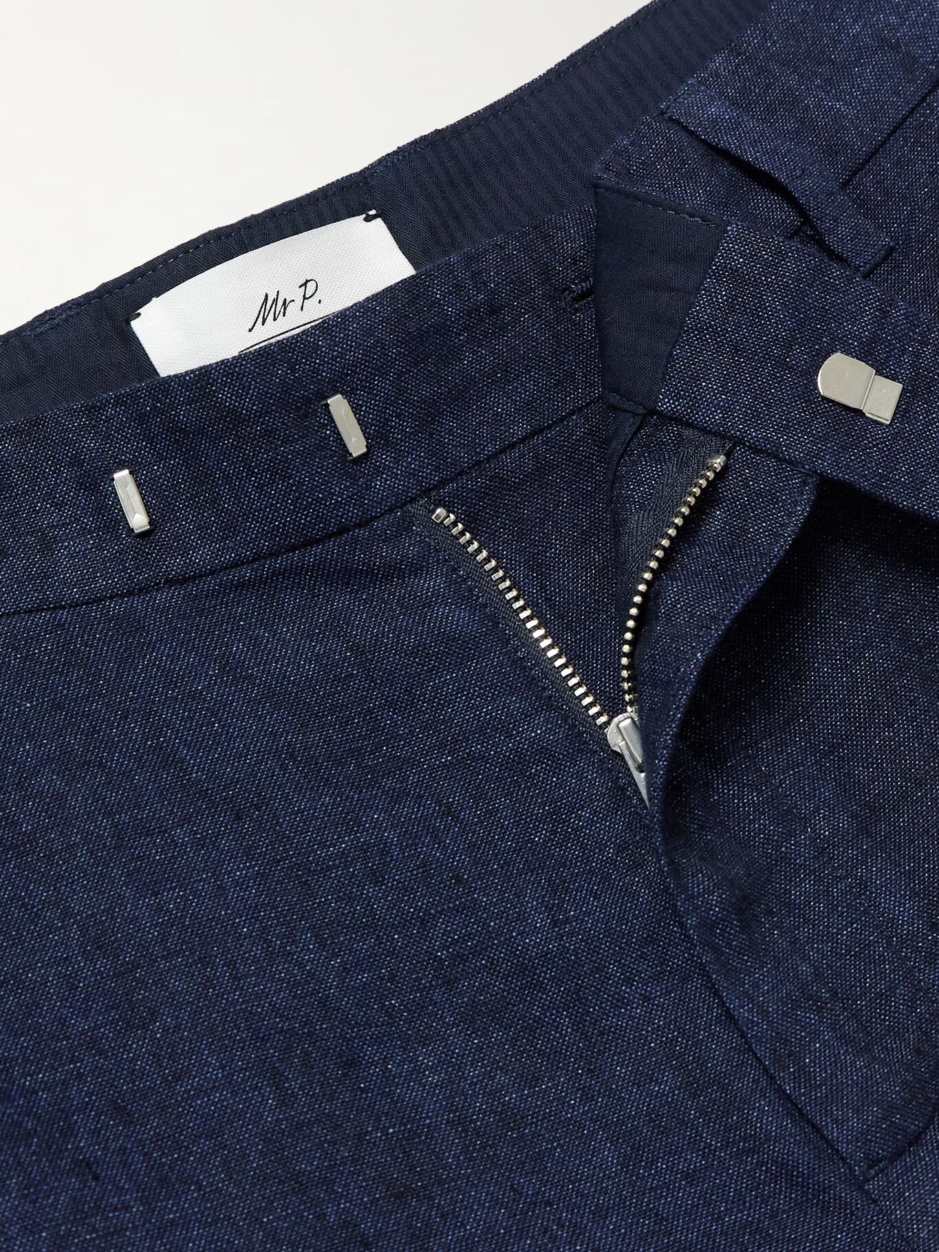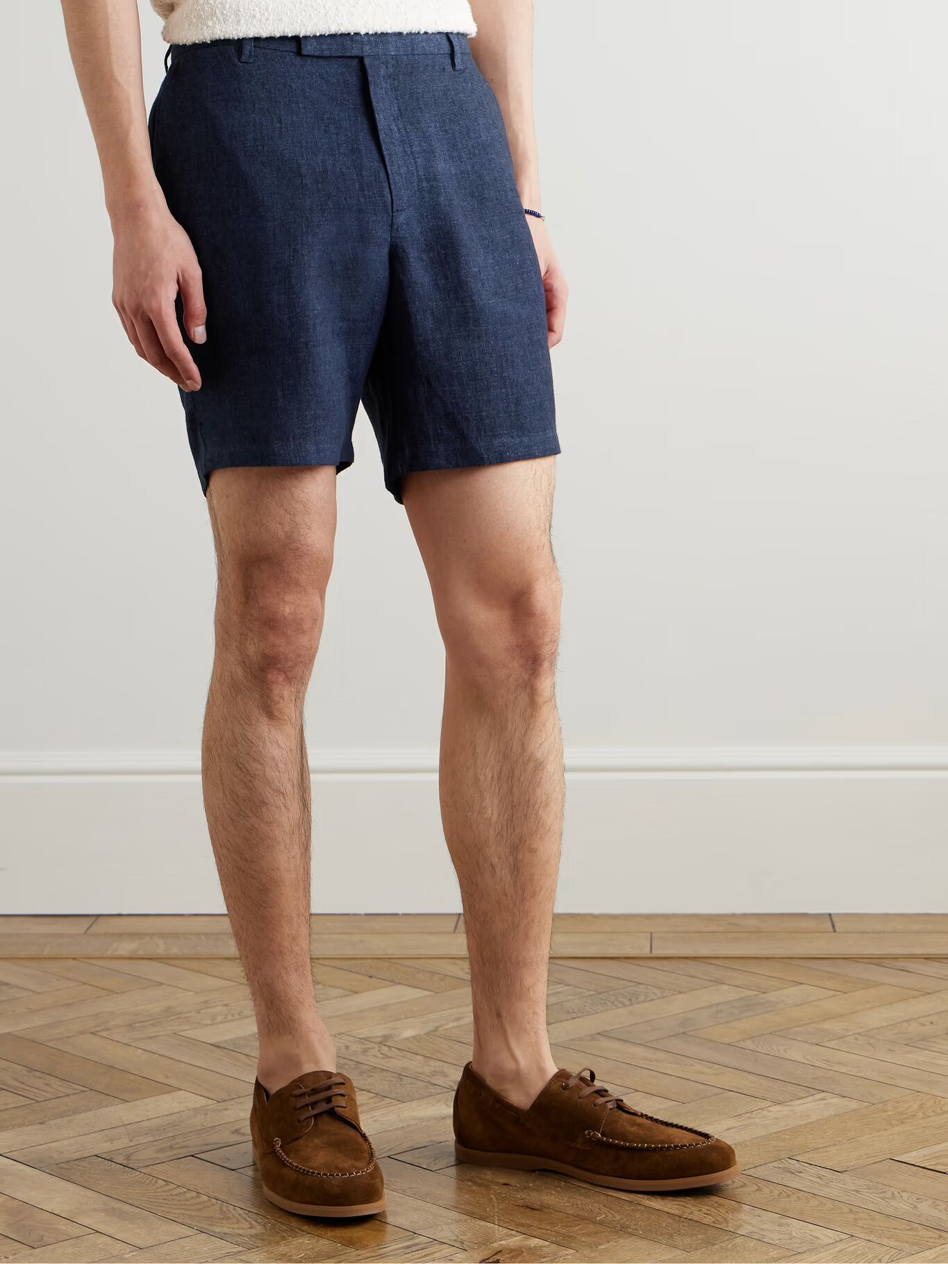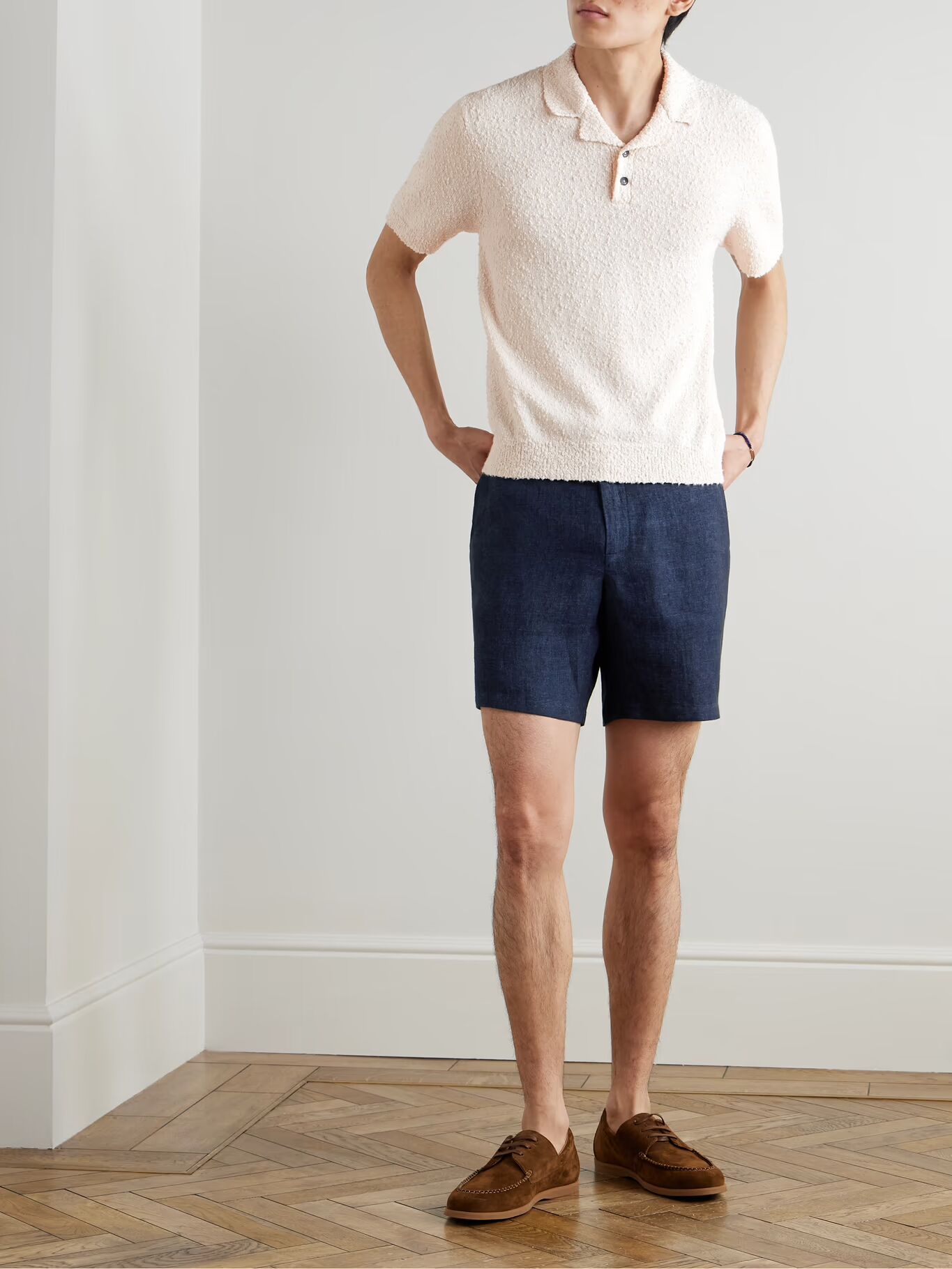 СОЗДАНО Г-НОМ ПОРТЕРОМ. Шорты-бермуды г-на П. позволят вам выглядеть элегантно и чувствовать себя прохладно, когда температура резко подскочит. Они сделаны из льна-шамбре, который легкий и дышащий, и имеют аккуратный прямой крой. Носите их с рубашкой-поло и мокасинами.