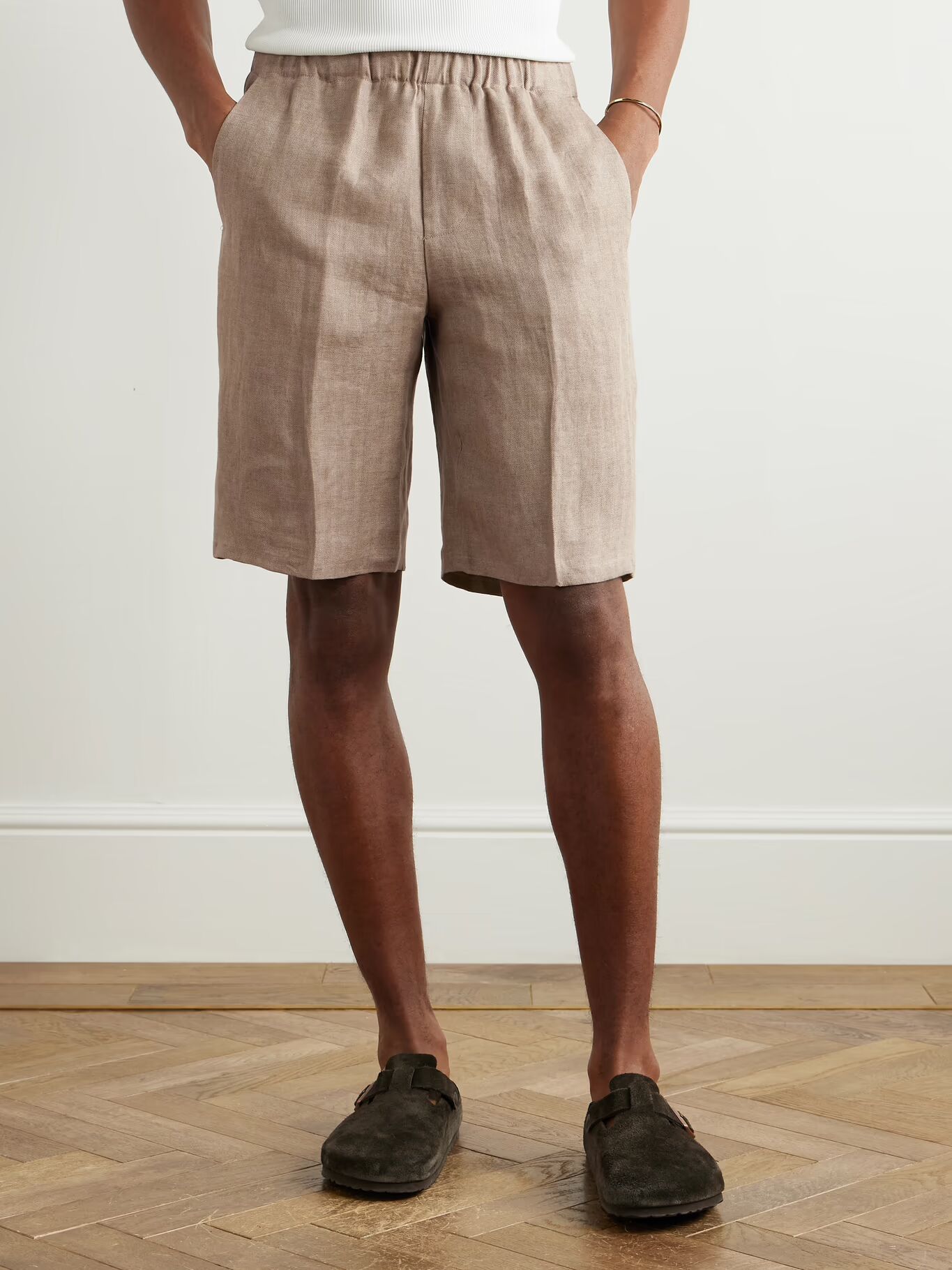 Эксперт по тканям PIACENZA 1733 привержен благородным натуральным волокнам. Идеальные для уикенда на Лазурном берегу, эти шорты с елочным узором были сделаны в Италии из легкого, дышащего льна. Носите их с лоферами или эспадрильями.