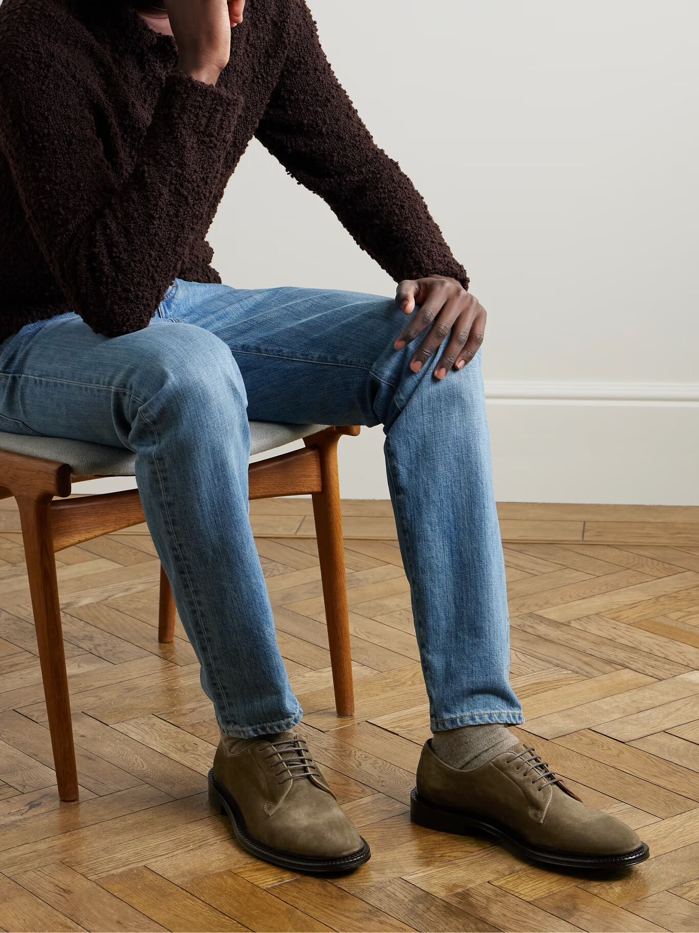 СОЗДАНО Г-НОМ ПОРТЕРОМ. Туфли дерби «Люсьен» г-на П. изготовлены в Португалии из супермягкой замши. Подошвы и подкладки будут становиться еще более гибкими по мере носки.