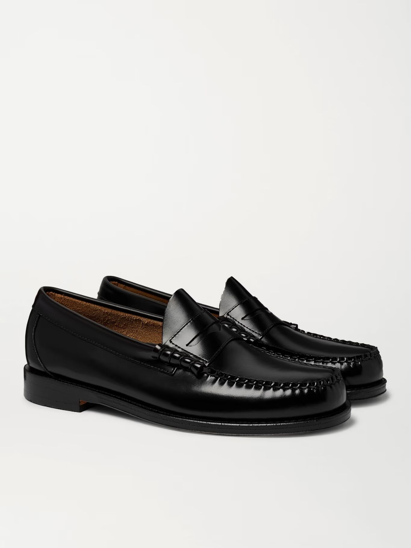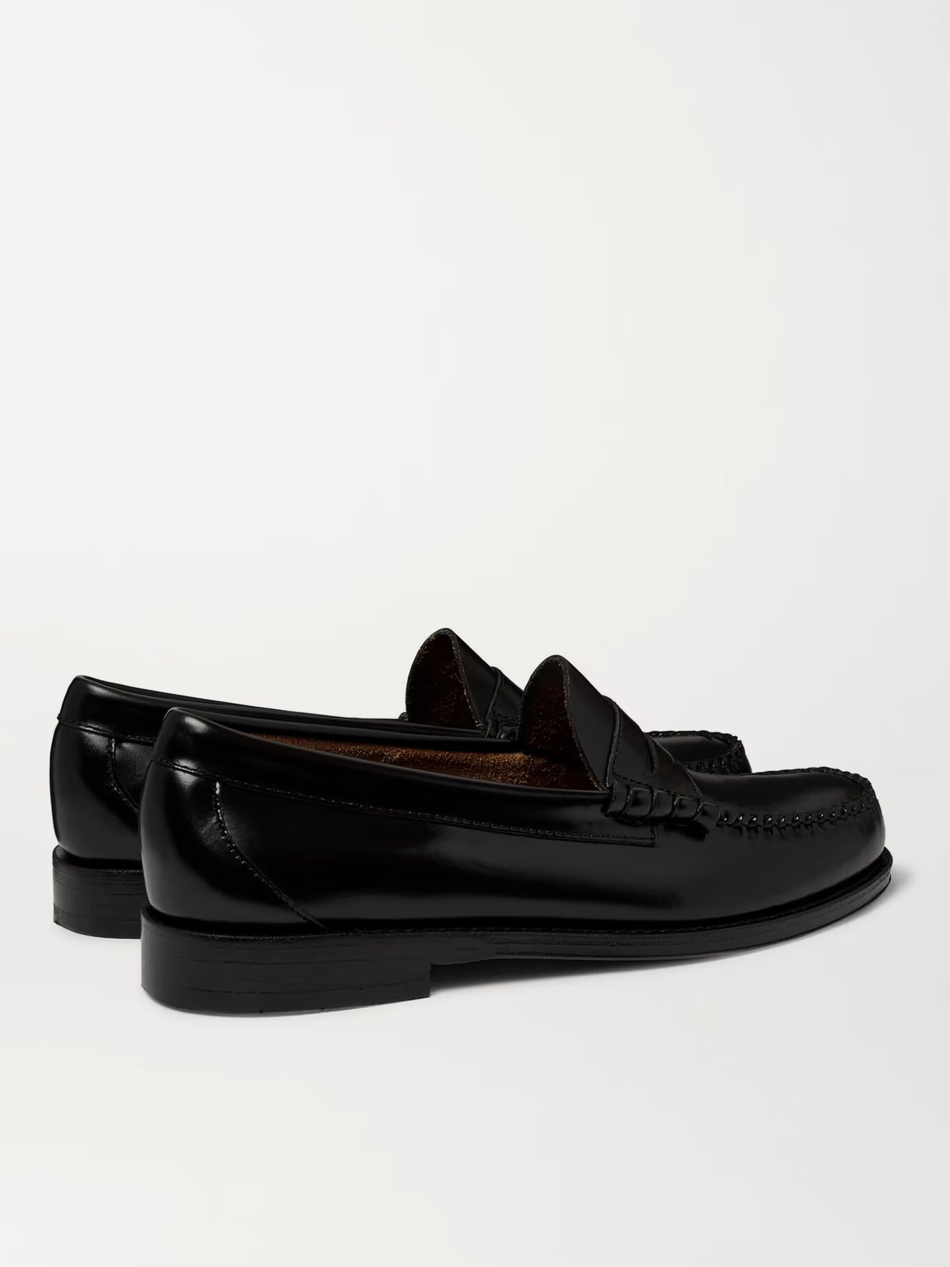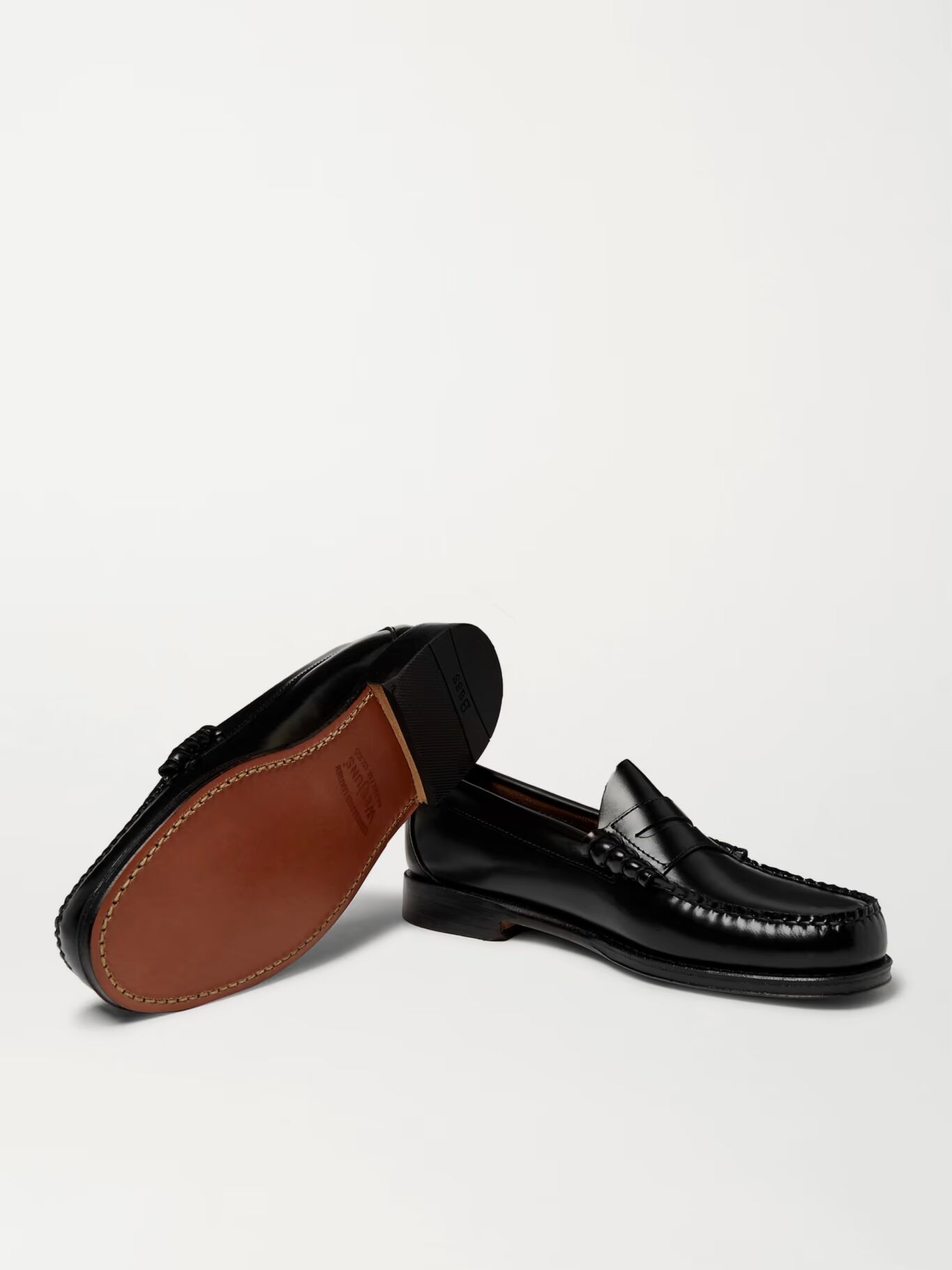 Вдохновленный традиционными туфлями-слайдерами норвежских рыбаков, Джордж Генри Басс создал первую пару пенни-лоферов еще в 1930-х годах. Они сделаны из гладкой черной кожи, имеют прочные швы, прошитые вручную, и подошвы с резиновой отделкой для сцепления.
