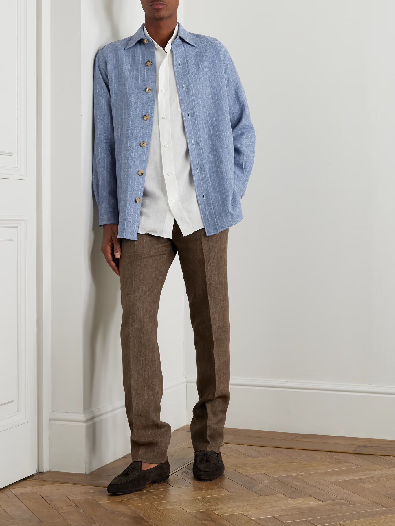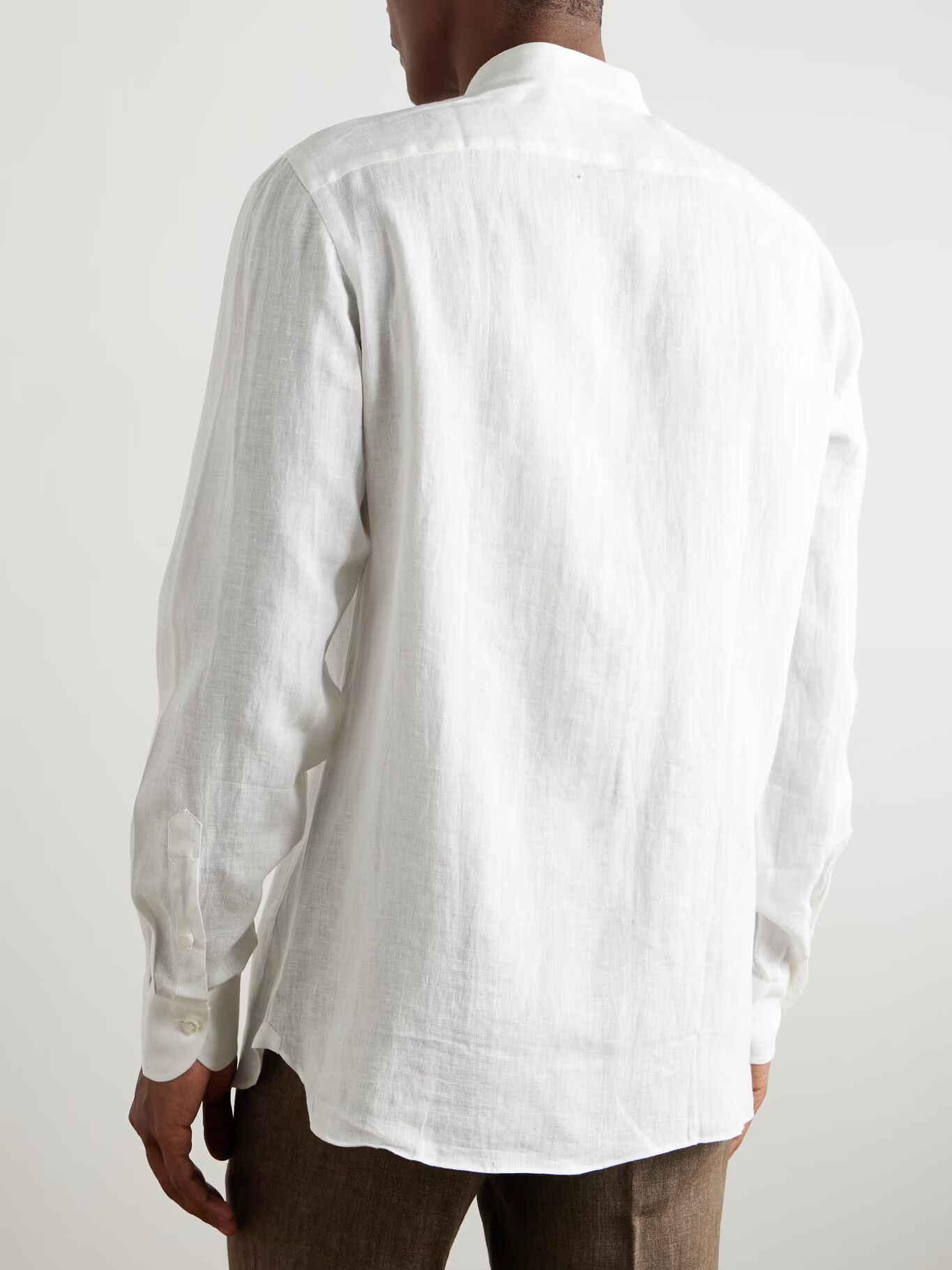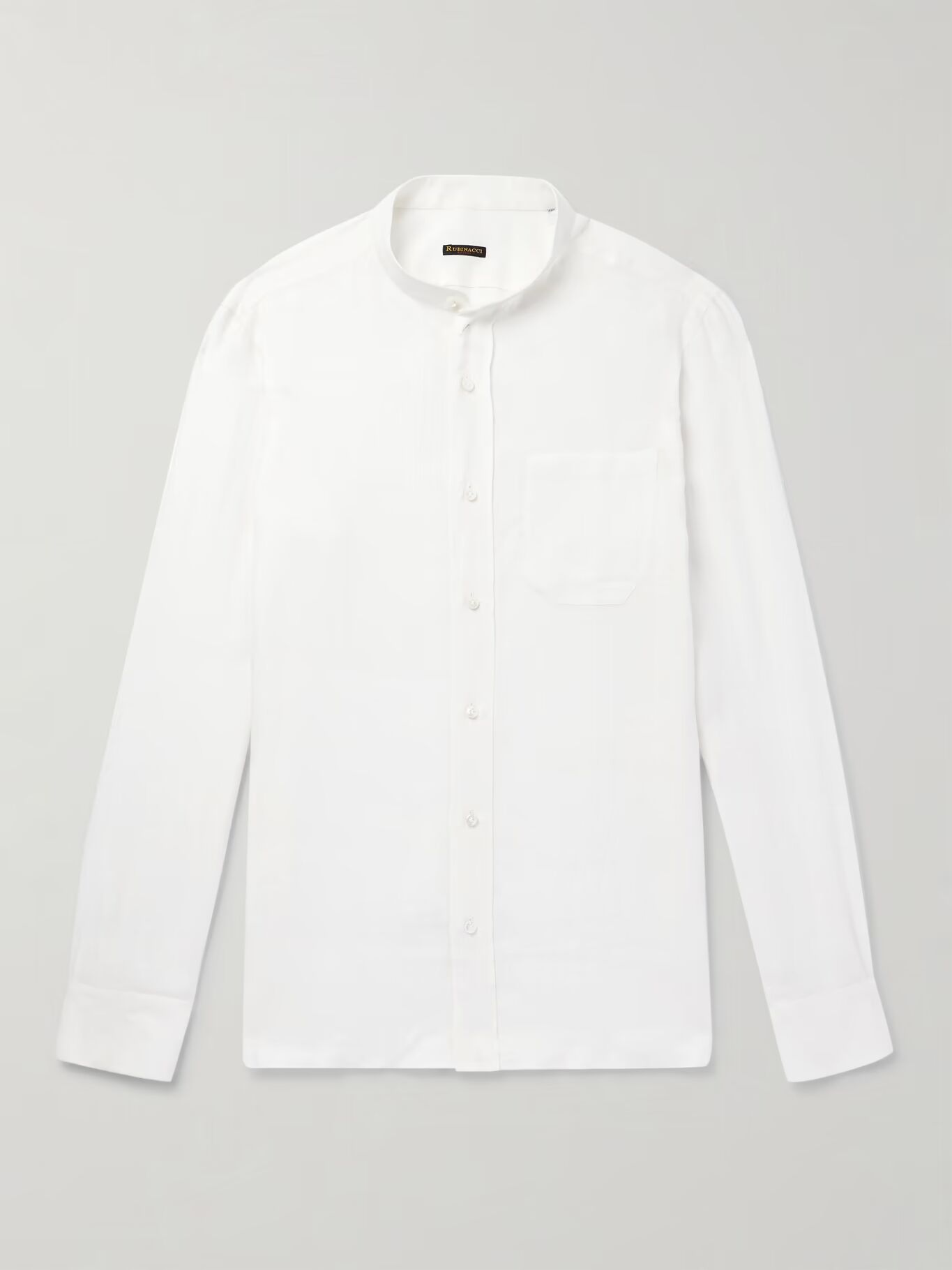 Рубашка «Guru» от Rubinacci — элегантная базовая вещь для теплой погоды. Идеально подходит для ношения с шортами-бермудами или как часть костюма, она сшита из легкого, дышащего льна и имеет классический воротник «дедушка». Подверните манжеты, чтобы усилить расслабленное ощущение.