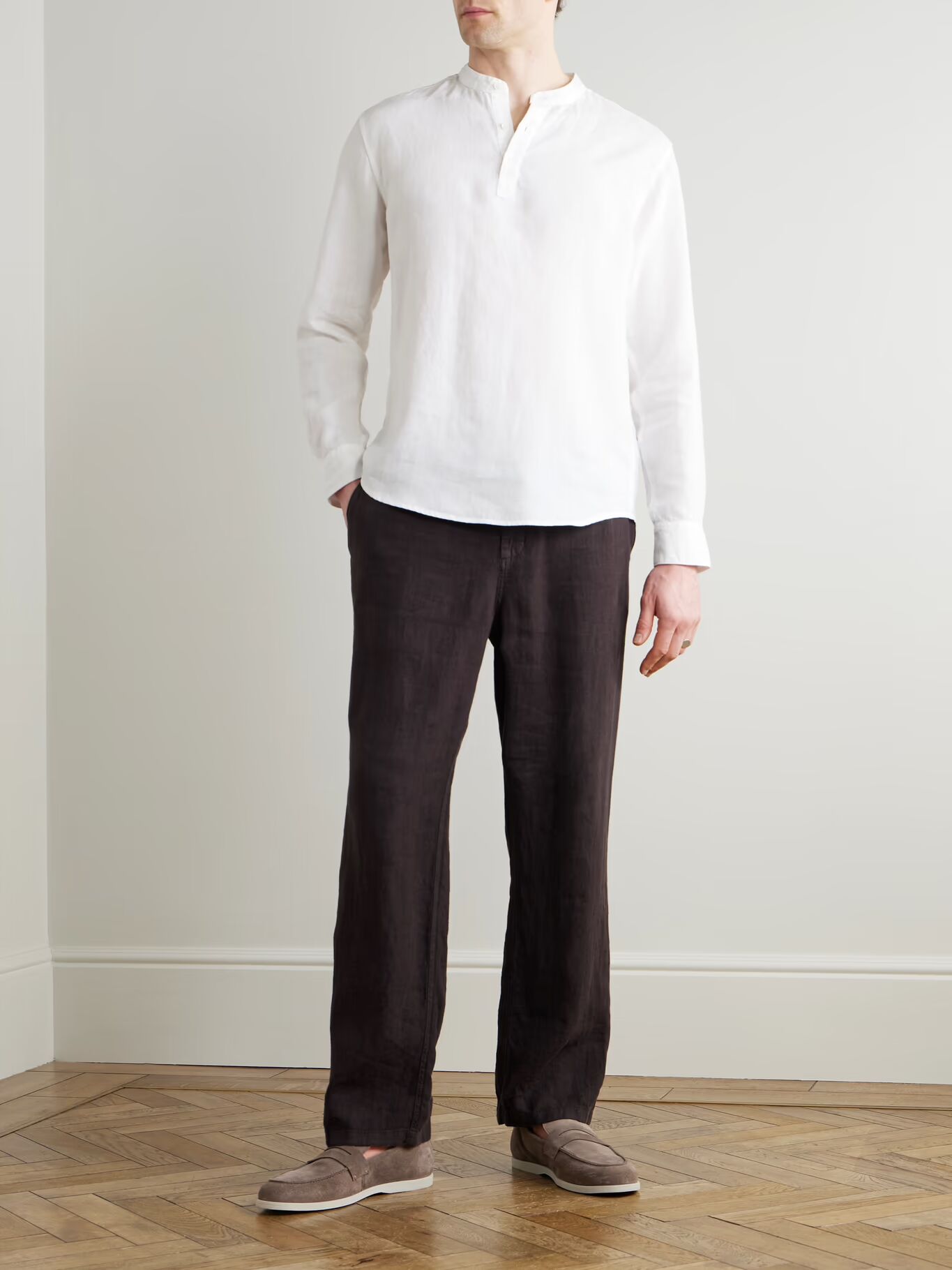 СОЗДАНО Г-НОМ ПОРТЕРОМ. Рубашка г-на П. станет отличным дополнением к вашему летнему гардеробу, так как она будет уместна на отдыхе или в городе. Взяв за основу кафтаны, она сшита из дышащего льна и имеет свободный воротник «дедушка».