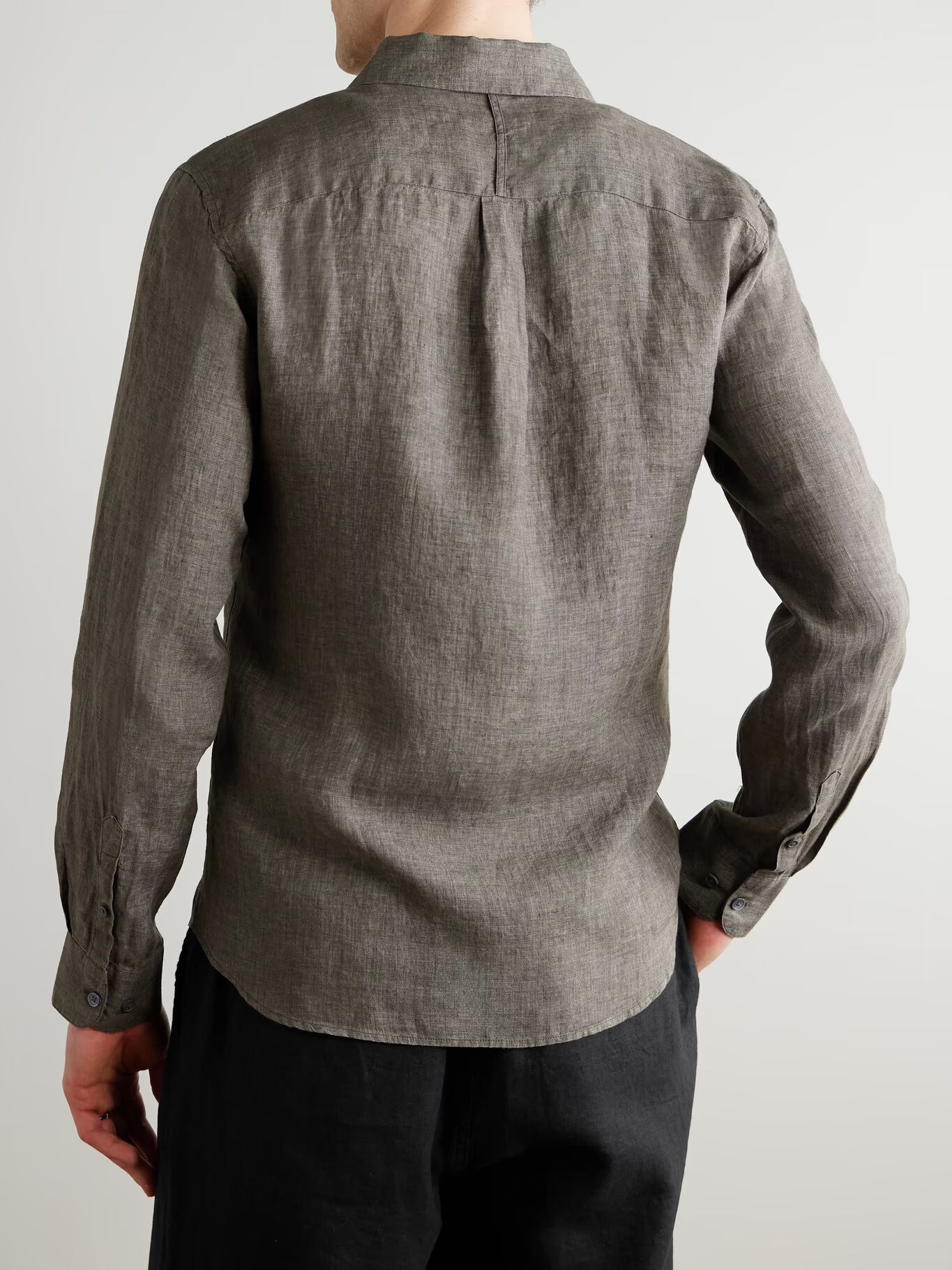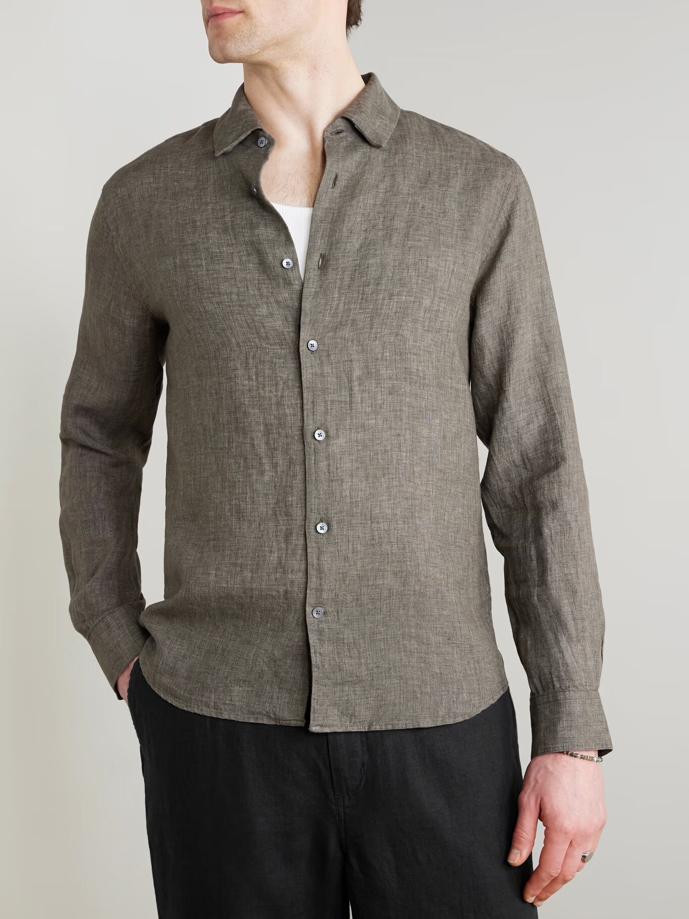 СОЗДАНО Г-НОМ ПОРТЕРОМ. Лен — ваш лучший выбор, когда температура повышается. Рубашка «Delave» от г-на П. сшита из дышащей ткани с удобным кроем и складкой на спине для простора в плечах.
