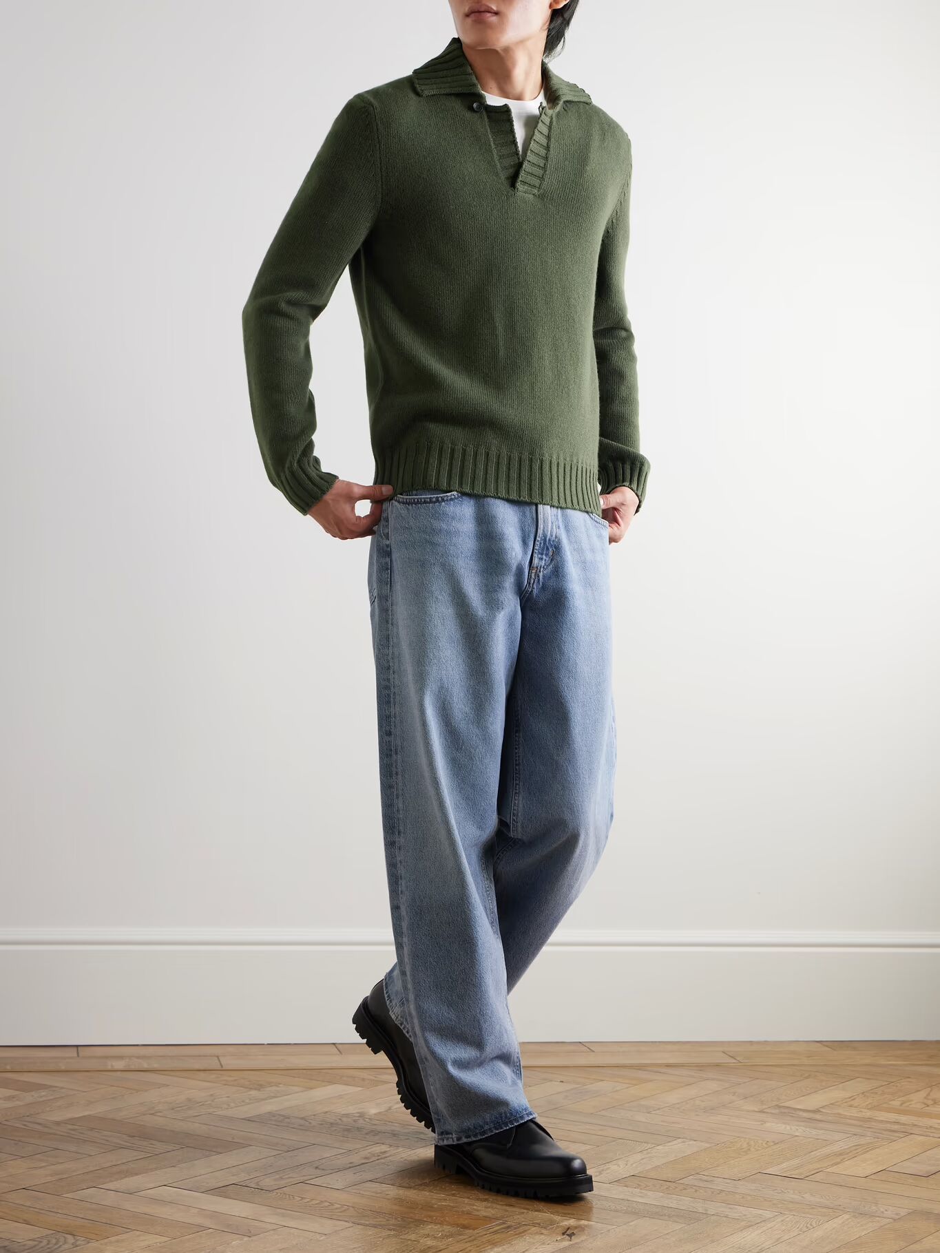 СОЗДАН ГОСПОДИНОМ ПОРТЕРОМ. Спроектированный с широким ребристым воротником, свитер г-на П. черпает вдохновение в традиционном стиле моряков. Он связан из шерсти и имеет слегка спущенные плечи.