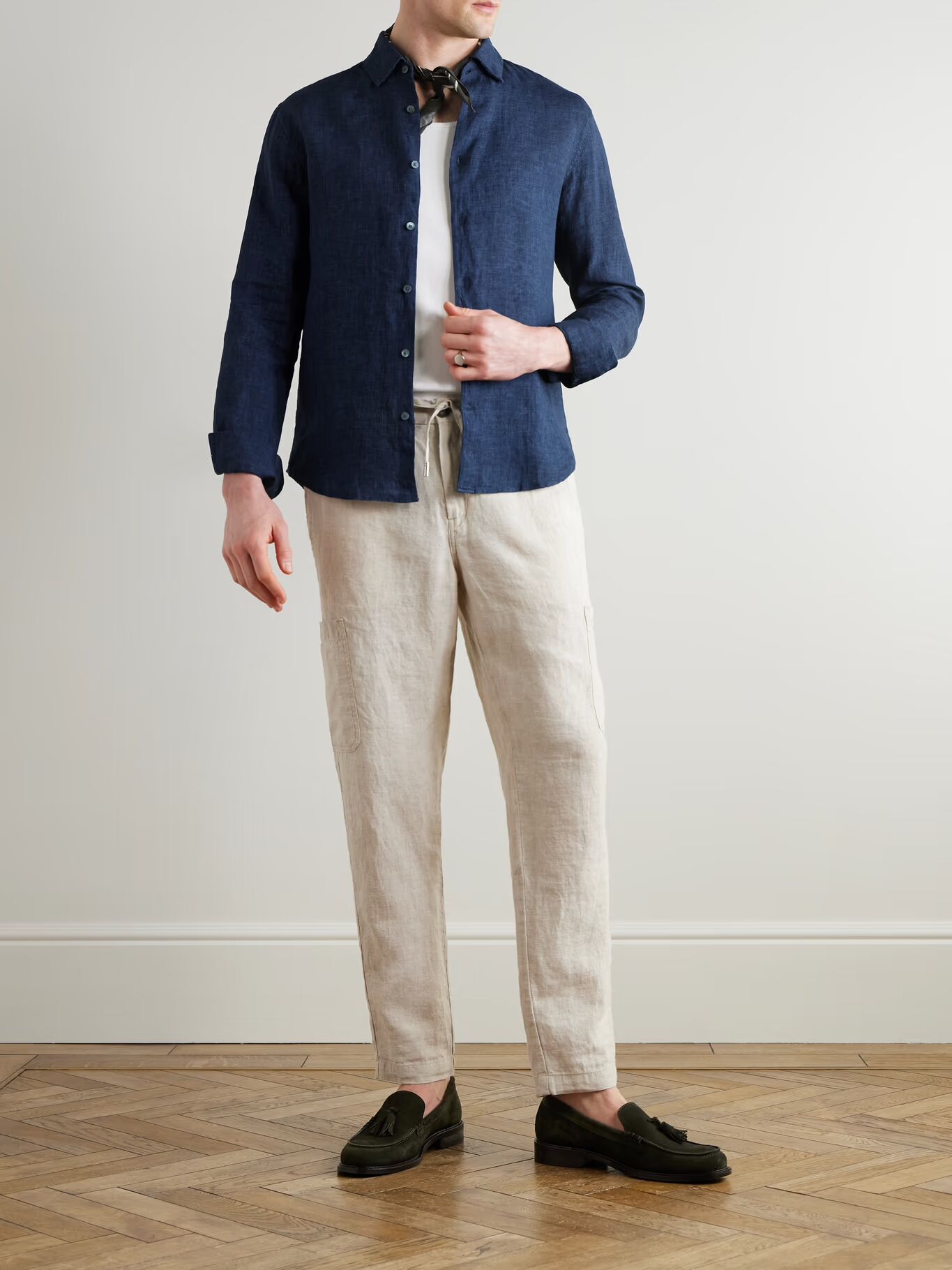 СОЗДАНО Г-НОМ ПОРТЕРОМ. Лен — ваш лучший выбор, когда температура повышается. Рубашка «Delave» от г-на П. сшита из дышащей ткани с удобным кроем и складкой на спине для простора в плечах.