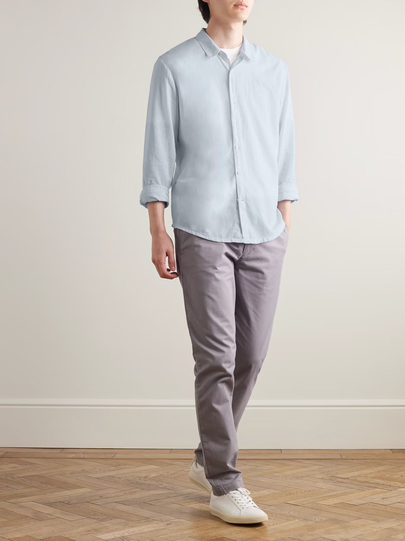 Один из фирменных стилей Джеймса Перса, эта рубашка «Standard» сделана из хлопкового «газон», который легкий, гладкий и дышащий. Она скроена для удобной посадки и имеет достаточно места для плеч, поэтому вы можете легко носить ее расстегнутой поверх футболки.