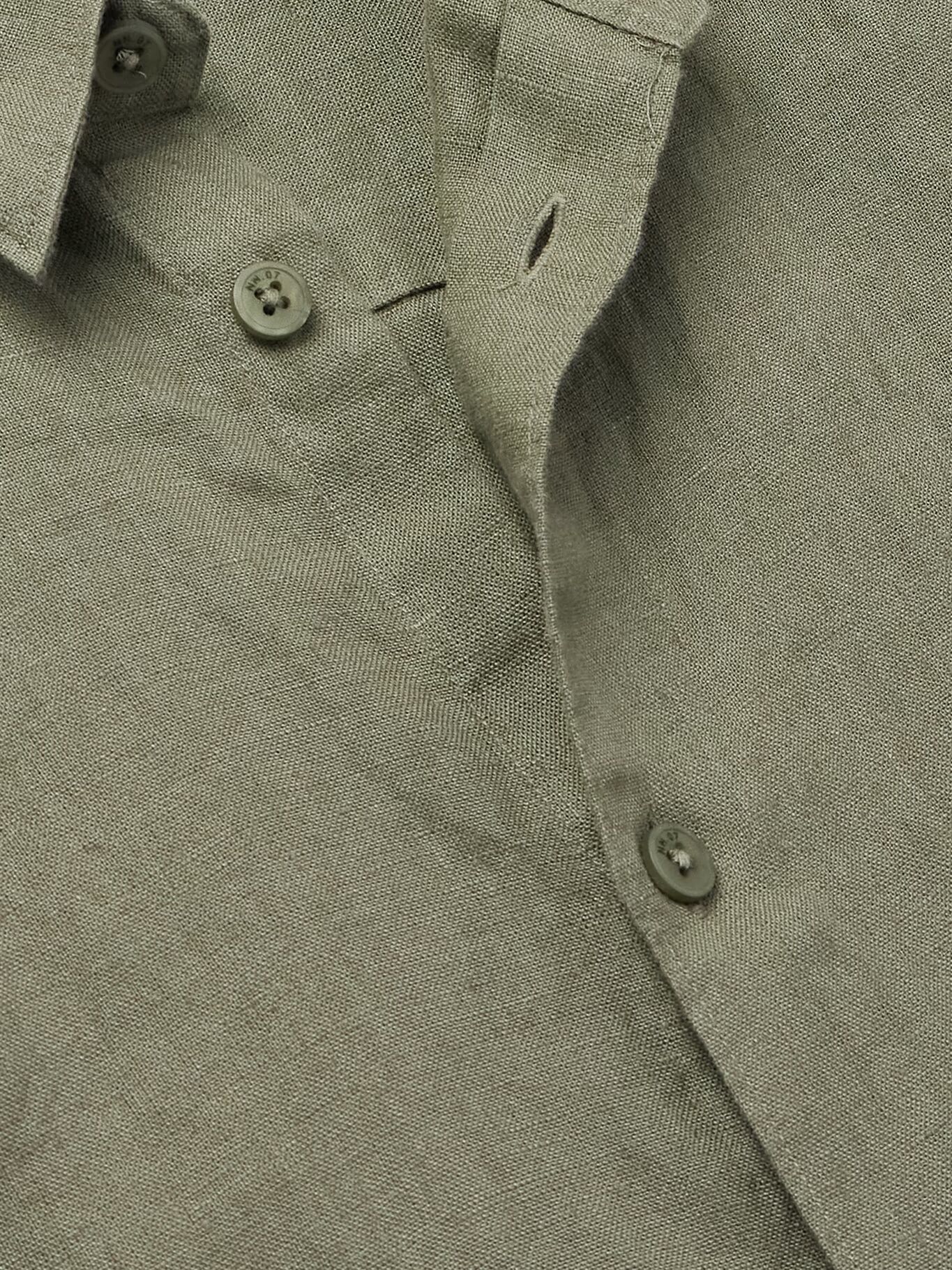 Рубашка NN07 'Enzo 5708' сделана из чистого льна, она мягкая, легкая и идеально подходит для теплых погодных условий. Она имеет стандартный крой и застегивается на тональные пуговицы.