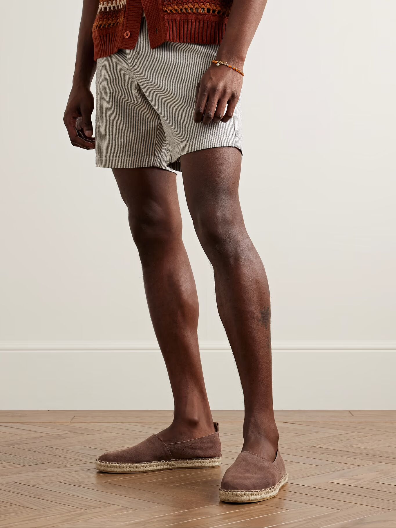 Поскольку мы продолжаем развивать мир Mr P., мы должны были включить эспадрильи в коллекцию как одну из лучших моделей обуви для теплой погоды. Они сделаны из замши с традиционной подошвой из джута и резины.