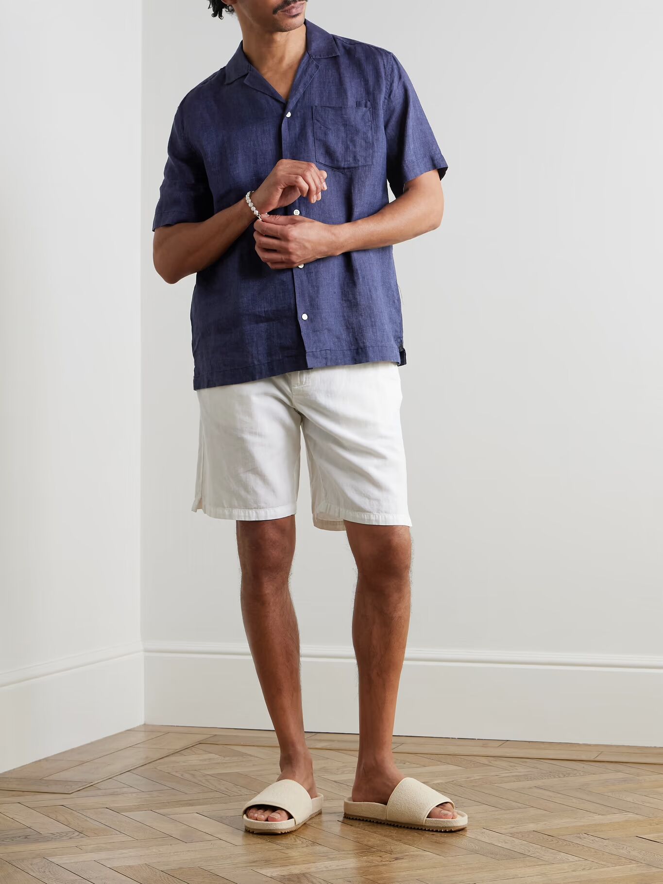 Если вы уже являетесь поклонником легкой рубашки 'Thomas' от Frescobol Carioca, вы оцените новую 'Angelo' — это тот же силуэт, сшитый из дышащего льна. Сочетайте ее с шортами для плавания или закатанными брюками чинос.