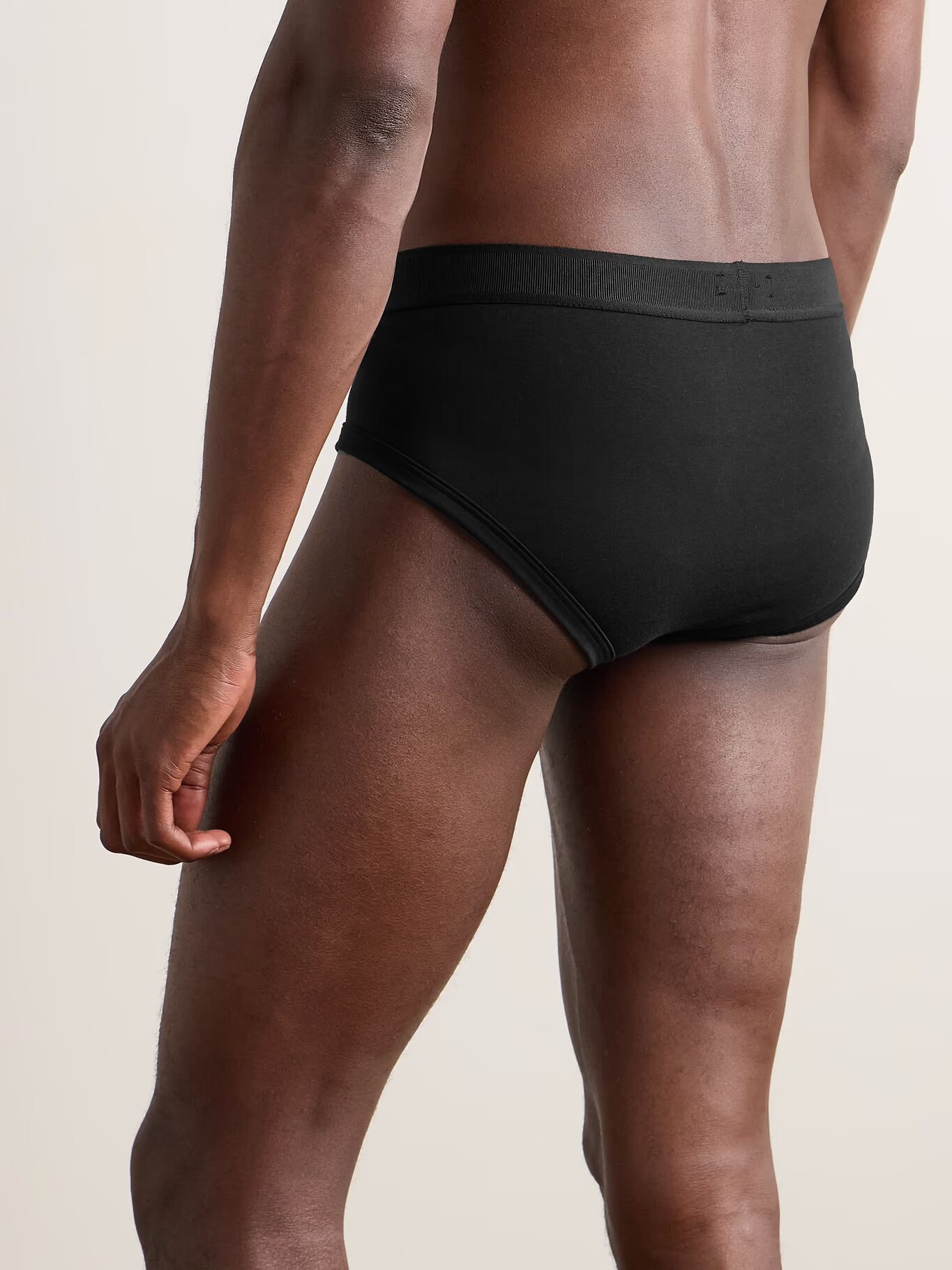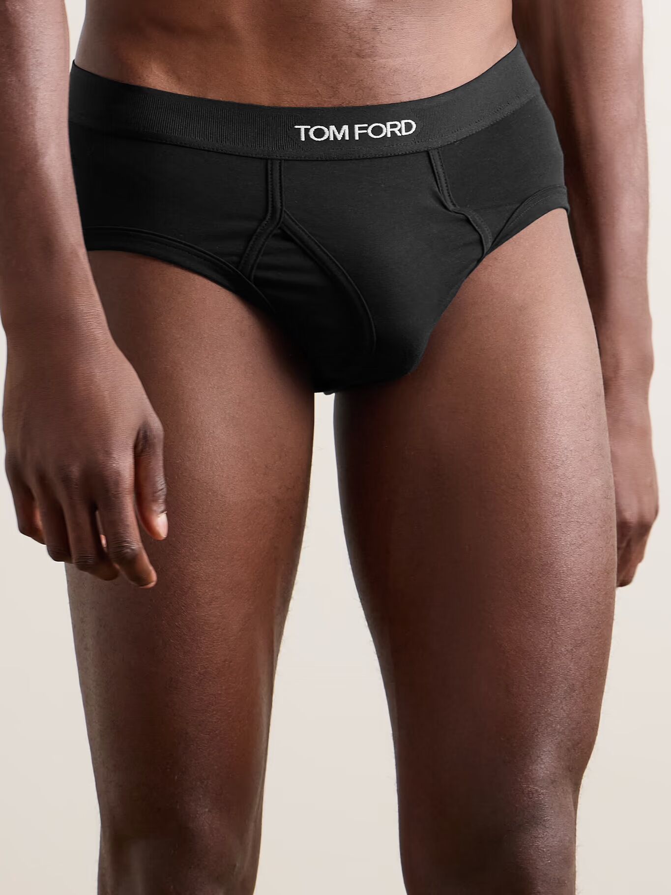 TOM FORD советует тщательно выбирать нижнее белье — лучше всего трусы подходят под хорошо облегающие брюки. Эта пара сшита из роскошной смеси хлопка, модала и стрейча, что обеспечивает особую мягкость и комфорт. Они дополнены элегантным логотипом, вытканным на поясе.