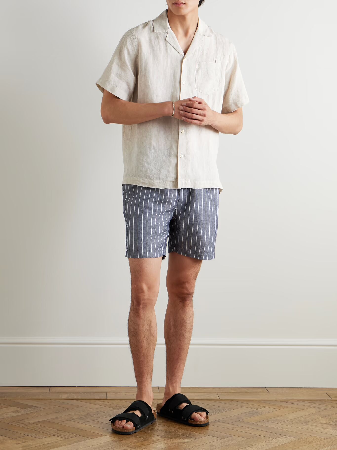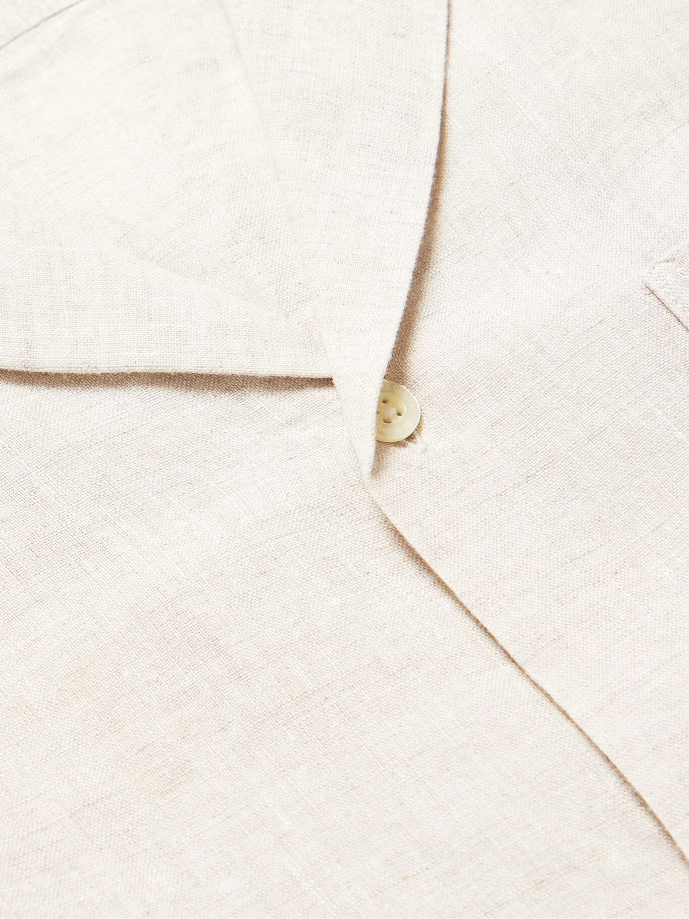 Если вы уже являетесь поклонником легкой рубашки 'Thomas' от Frescobol Carioca, вы оцените новую 'Angelo' — это тот же силуэт, сшитый из дышащего льна. Сочетайте ее с шортами для плавания или закатанными брюками чинос.
